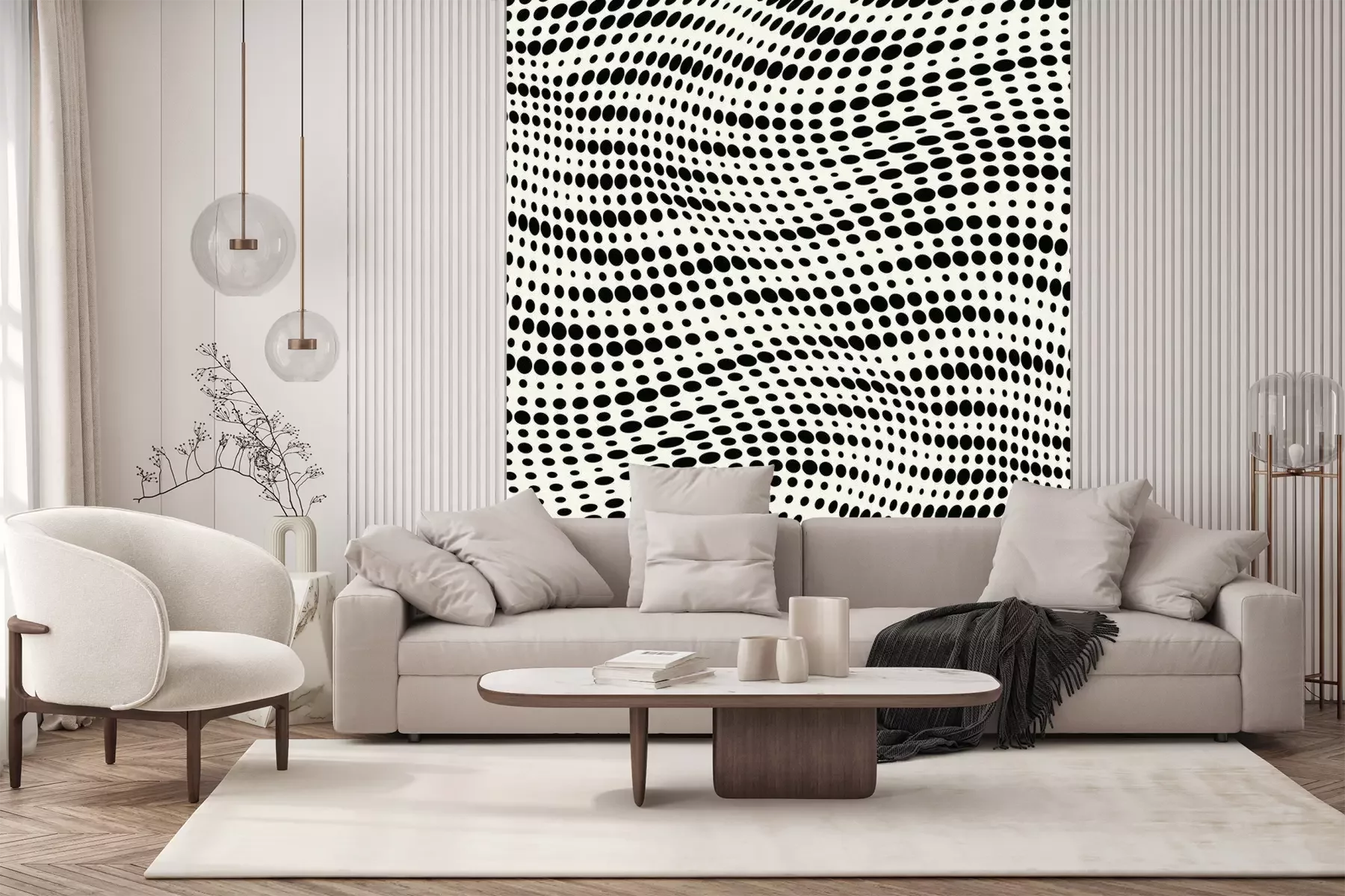 Het materiaal Standard is een hoogwaardig latexmateriaal met een glad, mat oppervlak. Dankzij de HP Latex-printtechnologie zijn de kleuren intens, duurzaam en UV-bestendig, waardoor het patroon jarenlang een onberispelijke uitstraling behoudt. Vervuilde oppervlakken kunnen voorzichtig worden afgeveegd met een droge doek. De maximale breedte van één baan bedraagt 95 cm of 105 cm – afhankelijk van de bestelde fotobehangbreedte. Bij grotere afmetingen wordt het patroon verdeeld over meerdere gelijkmatige banen. Het fotobehang wordt rand-aan-randaangebracht, wat vrijwel onzichtbare naden mogelijk maakt.