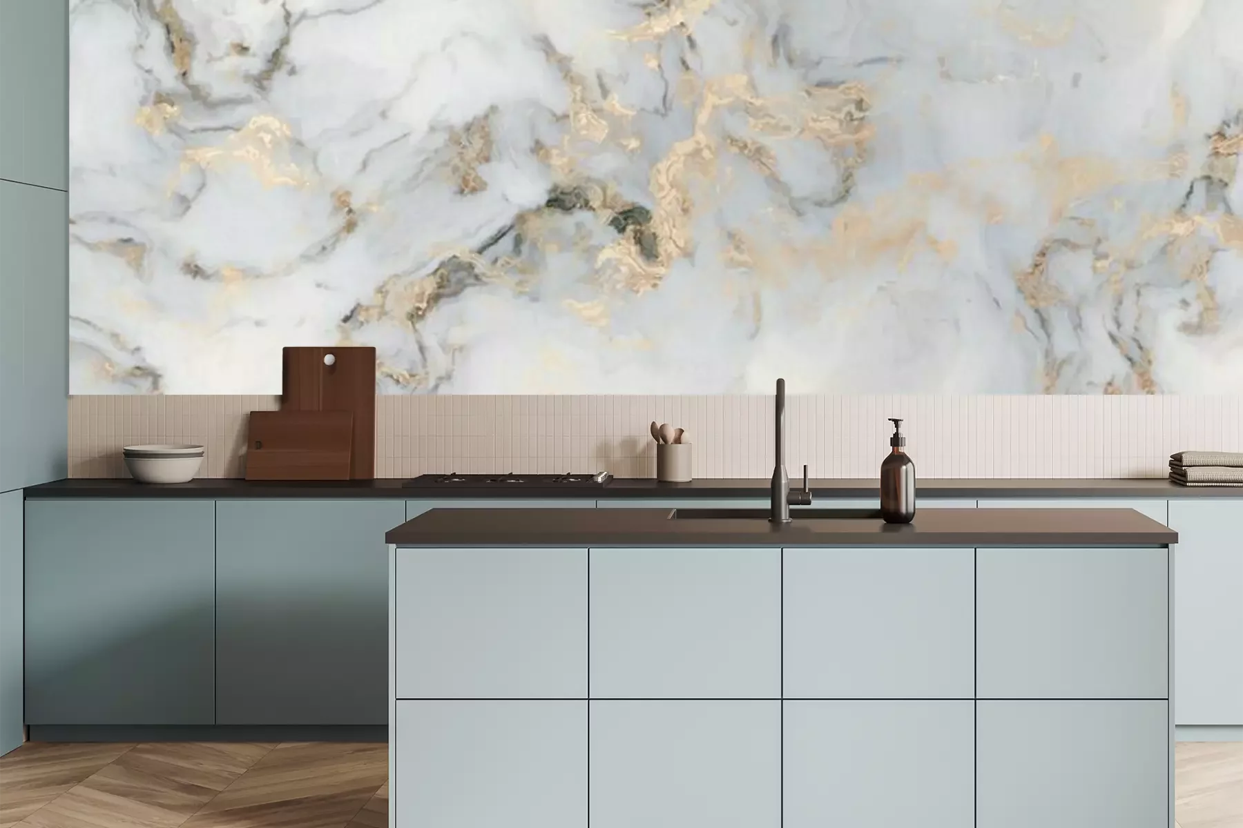 Het materiaal Premium is een glad vinyl op vlies, dat bestand is tegen uitrekken en vervorming. Het is dampdoorlatend – de muren kunnen vrij ademen – waardoor het geschikt is voor gebruik in de keuken en badkamer. Bij vervuiling kan het materiaal worden afgenomen met een vochtige doek. De maximale breedte van één baan bedraagt 95 of 105 cm, afhankelijk van de beschikbaarheid. Montage vindt plaats met de rand-aan-rand methode, wat een esthetisch resultaat zonder zichtbare naden oplevert. Omdat de lijm rechtstreeks op de muur wordt aangebracht, verloopt de installatie van het fotobehang snel en eenvoudig.