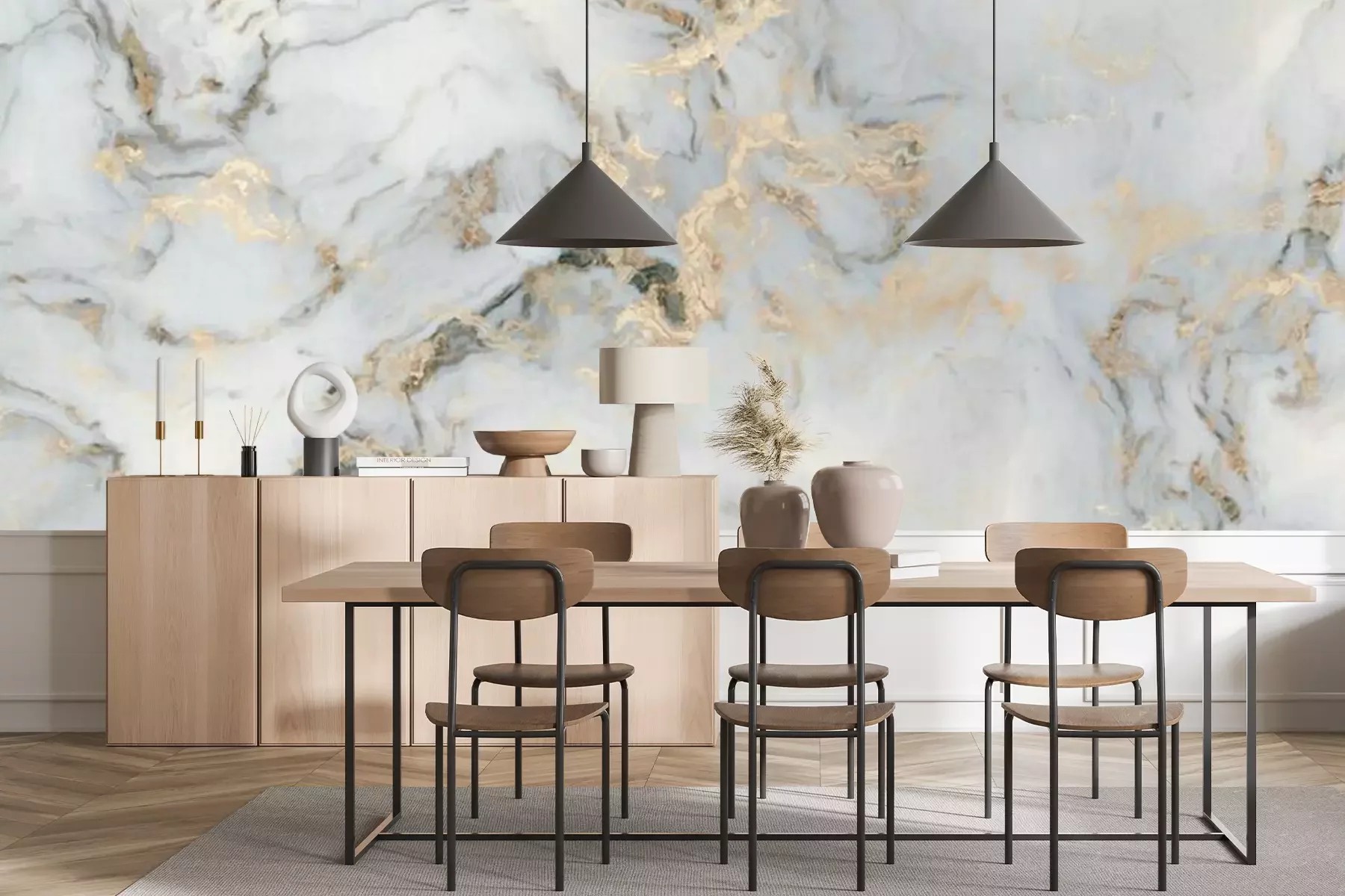 Het materiaal Premium+ is een gestructureerd vinyl op vlies met een gewicht van 255 g/m², dat kleine oneffenheden in de muur effectief camoufleert. De subtiele structuur van fijn zand geeft het oppervlak een exclusieve uitstraling, terwijl de halfmatte afwerking de diepte van de kleuren benadrukt. Het materiaal is dampdoorlatend, waardoor het ook in de keuken en badkamer kan worden gebruikt. De maximale breedte van één baan bedraagt 100 cm – bij grotere afmetingen wordt het fotobehang in meerdere gelijke banen verdeeld. De lijm wordt direct op de muur aangebracht en het behang wordt rand-aan-rand geplakt, wat zorgt voor een esthetisch resultaat zonder zichtbare naden. Het oppervlak kan gemakkelijk worden schoongemaakt door het voorzichtig af te nemen met een vochtige doek.