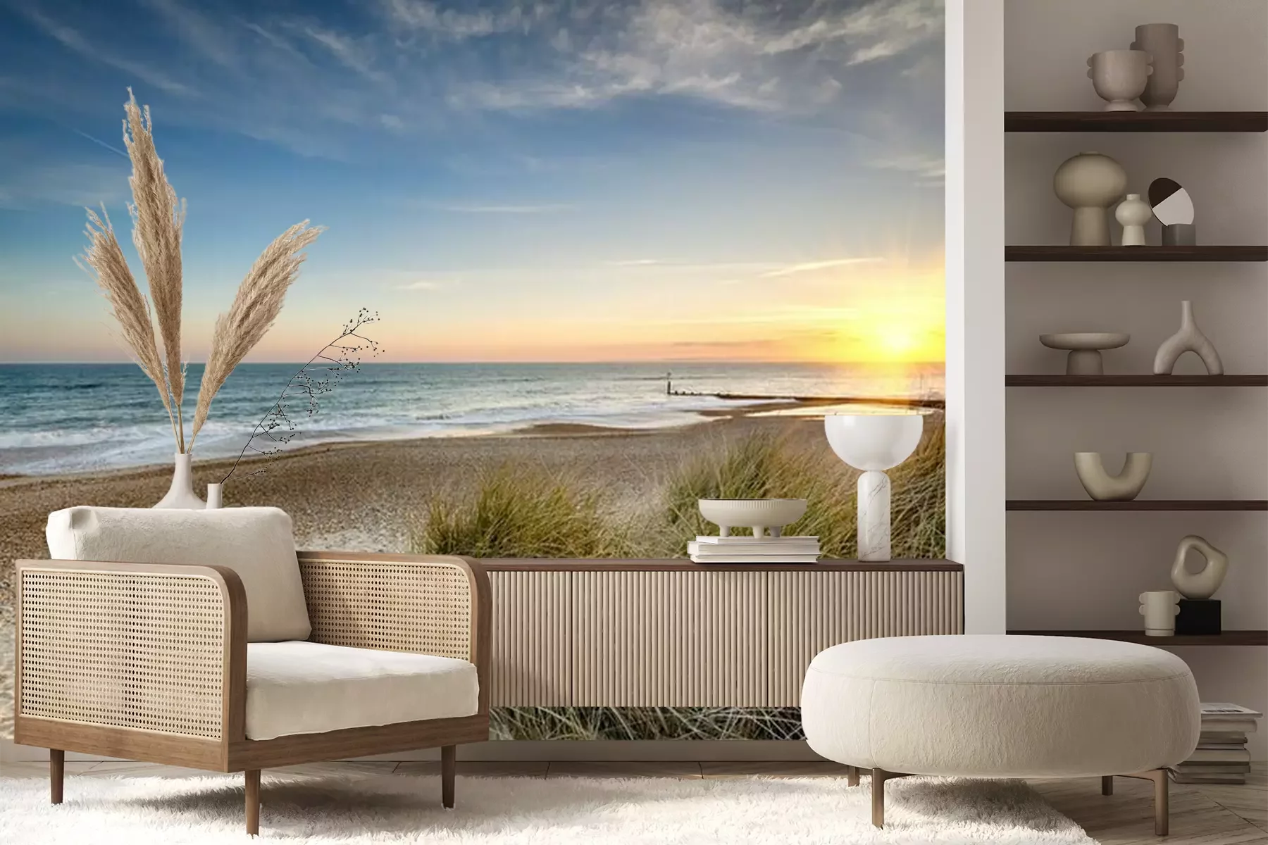 Het materiaal Premium+ is een gestructureerd vinyl op vlies met een gewicht van 255 g/m², dat kleine oneffenheden in de muur effectief camoufleert. De subtiele structuur van fijn zand geeft het oppervlak een exclusieve uitstraling, terwijl de halfmatte afwerking de diepte van de kleuren benadrukt. Het materiaal is dampdoorlatend, waardoor het ook in de keuken en badkamer kan worden gebruikt. De maximale breedte van één baan bedraagt 100 cm – bij grotere afmetingen wordt het fotobehang in meerdere gelijke banen verdeeld. De lijm wordt direct op de muur aangebracht en het behang wordt rand-aan-rand geplakt, wat zorgt voor een esthetisch resultaat zonder zichtbare naden. Het oppervlak kan gemakkelijk worden schoongemaakt door het voorzichtig af te nemen met een vochtige doek.