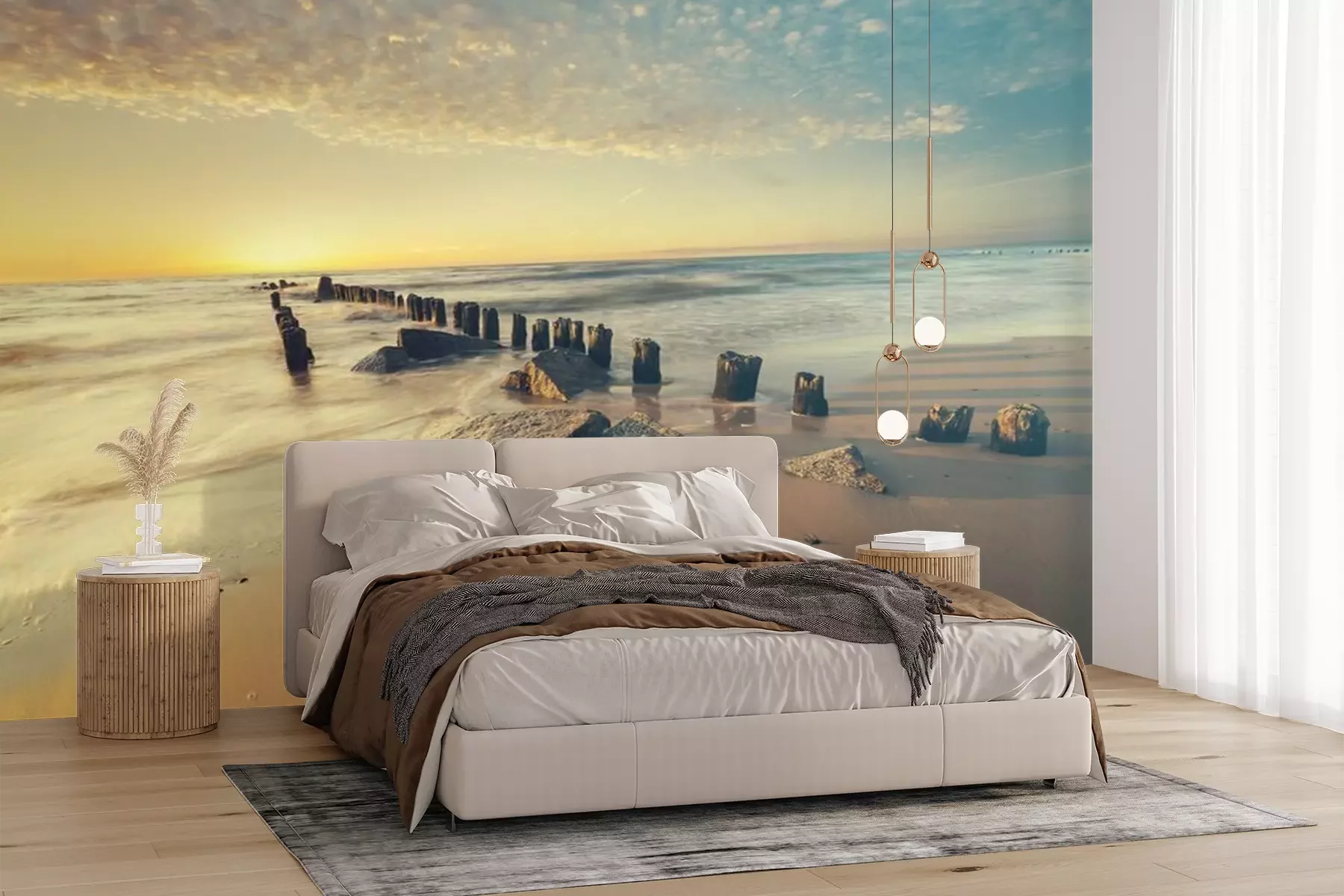 Het materiaal Premium+ is een gestructureerd vinyl op vlies met een gewicht van 255 g/m², dat kleine oneffenheden in de muur effectief camoufleert. De subtiele structuur van fijn zand geeft het oppervlak een exclusieve uitstraling, terwijl de halfmatte afwerking de diepte van de kleuren benadrukt. Het materiaal is dampdoorlatend, waardoor het ook in de keuken en badkamer kan worden gebruikt. De maximale breedte van één baan bedraagt 100 cm – bij grotere afmetingen wordt het fotobehang in meerdere gelijke banen verdeeld. De lijm wordt direct op de muur aangebracht en het behang wordt rand-aan-rand geplakt, wat zorgt voor een esthetisch resultaat zonder zichtbare naden. Het oppervlak kan gemakkelijk worden schoongemaakt door het voorzichtig af te nemen met een vochtige doek.