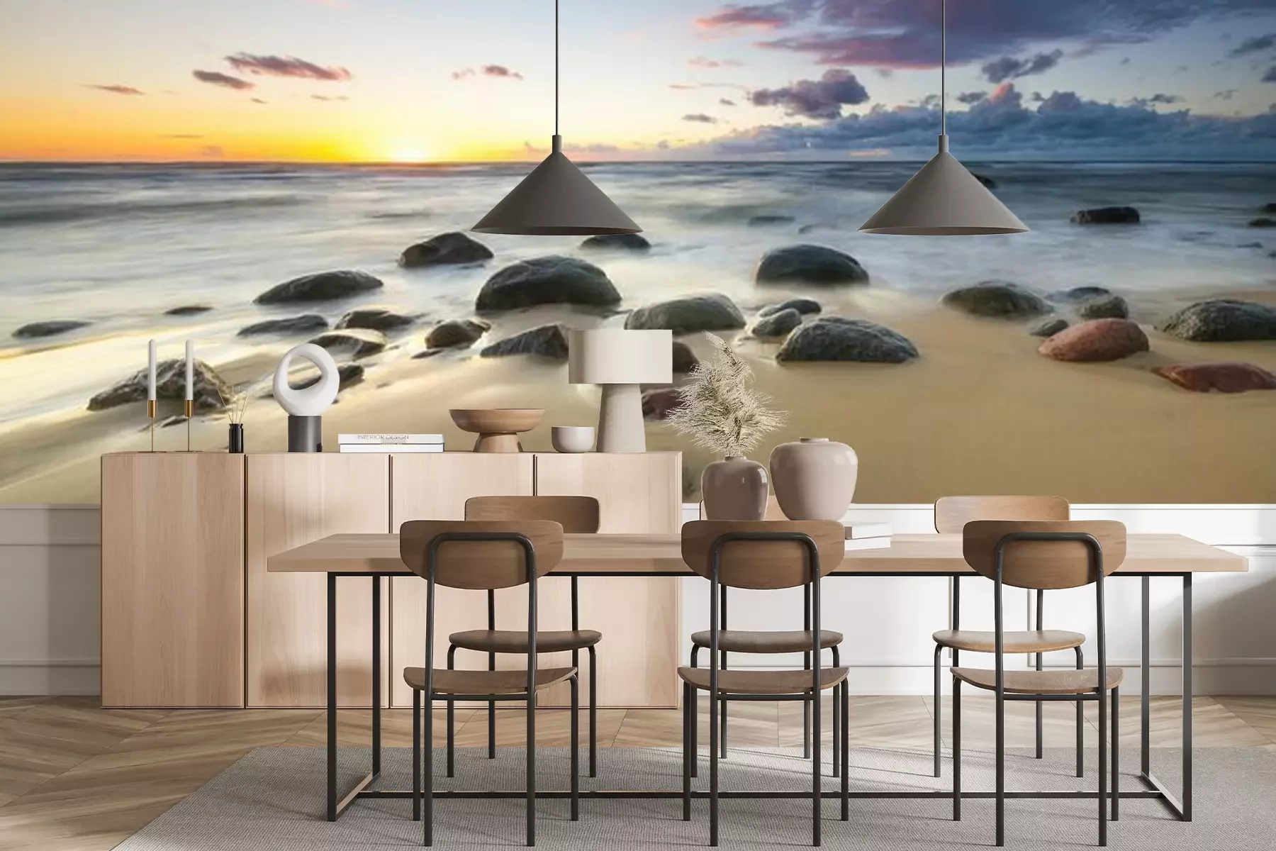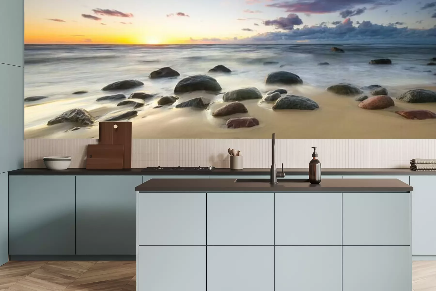 Het materiaal Premium+ is een gestructureerd vinyl op vlies met een gewicht van 255 g/m², dat kleine oneffenheden in de muur effectief camoufleert. De subtiele structuur van fijn zand geeft het oppervlak een exclusieve uitstraling, terwijl de halfmatte afwerking de diepte van de kleuren benadrukt. Het materiaal is dampdoorlatend, waardoor het ook in de keuken en badkamer kan worden gebruikt. De maximale breedte van één baan bedraagt 100 cm – bij grotere afmetingen wordt het fotobehang in meerdere gelijke banen verdeeld. De lijm wordt direct op de muur aangebracht en het behang wordt rand-aan-rand geplakt, wat zorgt voor een esthetisch resultaat zonder zichtbare naden. Het oppervlak kan gemakkelijk worden schoongemaakt door het voorzichtig af te nemen met een vochtige doek.