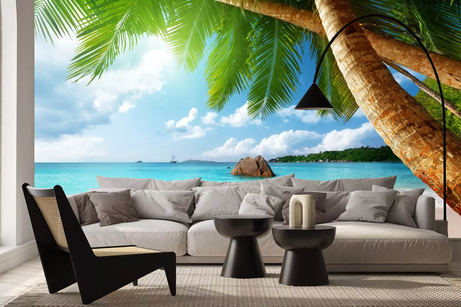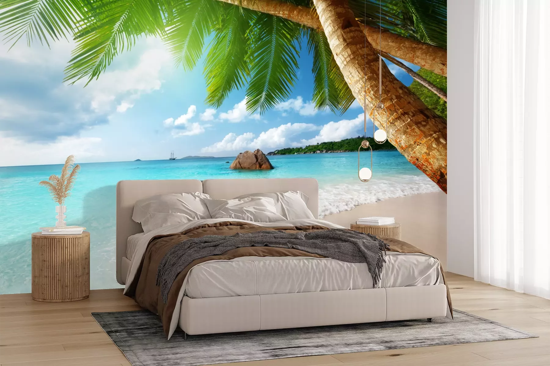 Het materiaal Premium+ is een gestructureerd vinyl op vlies met een gewicht van 255 g/m², dat kleine oneffenheden in de muur effectief camoufleert. De subtiele structuur van fijn zand geeft het oppervlak een exclusieve uitstraling, terwijl de halfmatte afwerking de diepte van de kleuren benadrukt. Het materiaal is dampdoorlatend, waardoor het ook in de keuken en badkamer kan worden gebruikt. De maximale breedte van één baan bedraagt 100 cm – bij grotere afmetingen wordt het fotobehang in meerdere gelijke banen verdeeld. De lijm wordt direct op de muur aangebracht en het behang wordt rand-aan-rand geplakt, wat zorgt voor een esthetisch resultaat zonder zichtbare naden. Het oppervlak kan gemakkelijk worden schoongemaakt door het voorzichtig af te nemen met een vochtige doek.