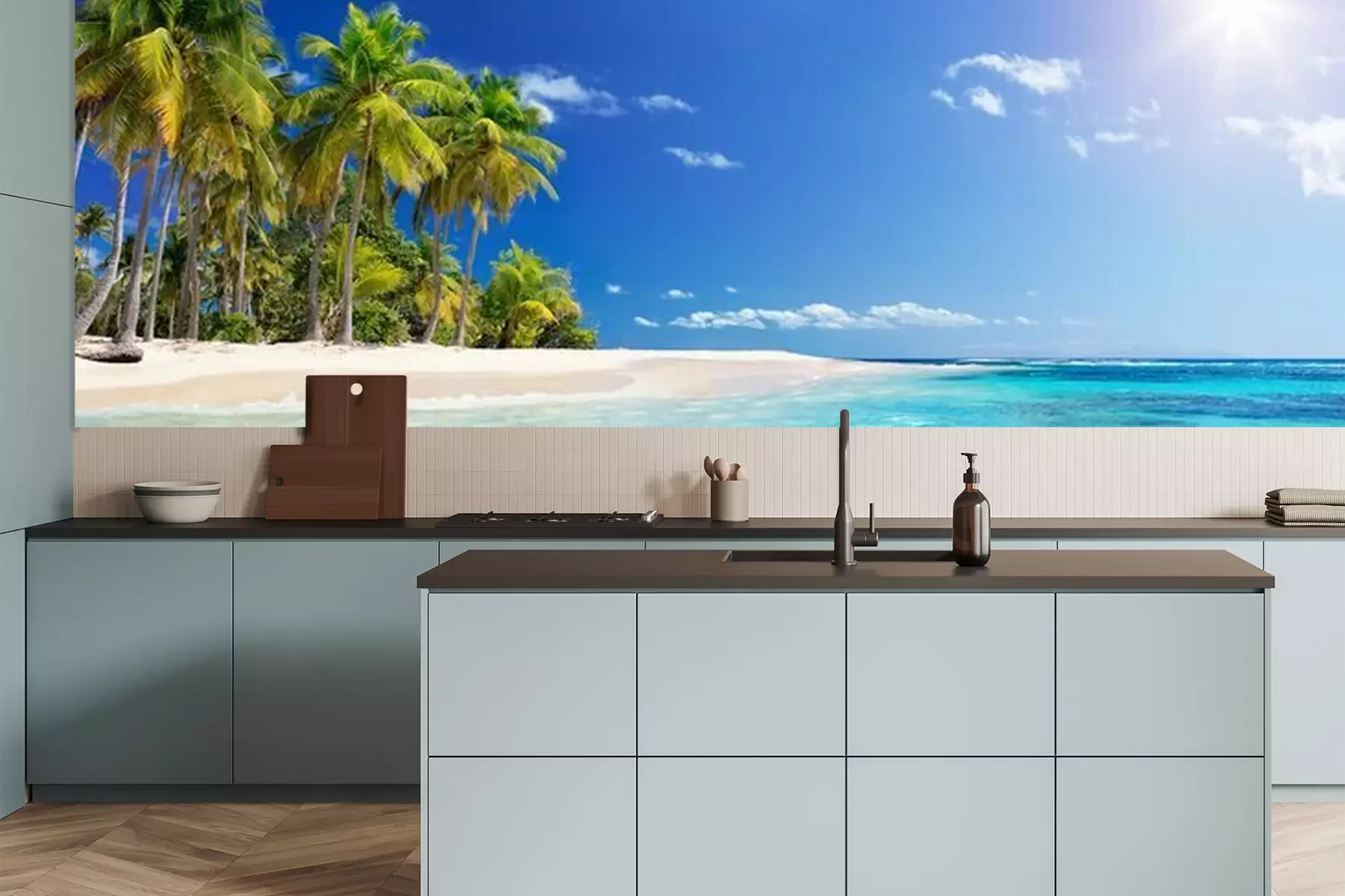 Het materiaal Premium is een glad vinyl op vlies, dat bestand is tegen uitrekken en vervorming. Het is dampdoorlatend – de muren kunnen vrij ademen – waardoor het geschikt is voor gebruik in de keuken en badkamer. Bij vervuiling kan het materiaal worden afgenomen met een vochtige doek. De maximale breedte van één baan bedraagt 95 of 105 cm, afhankelijk van de beschikbaarheid. Montage vindt plaats met de rand-aan-rand methode, wat een esthetisch resultaat zonder zichtbare naden oplevert. Omdat de lijm rechtstreeks op de muur wordt aangebracht, verloopt de installatie van het fotobehang snel en eenvoudig.