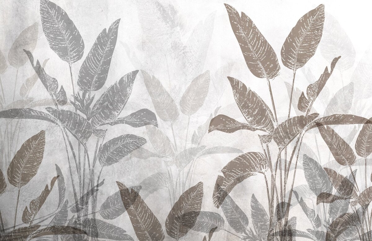 Fotobehang: Strelitzia grote tropische planten op een betonnen achtergrond
