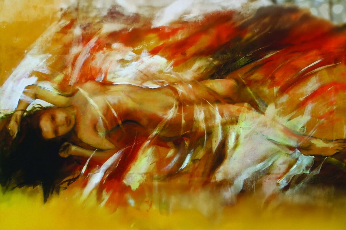 Fotobehang: Subtiel geschilderd silhouet van een vrouw