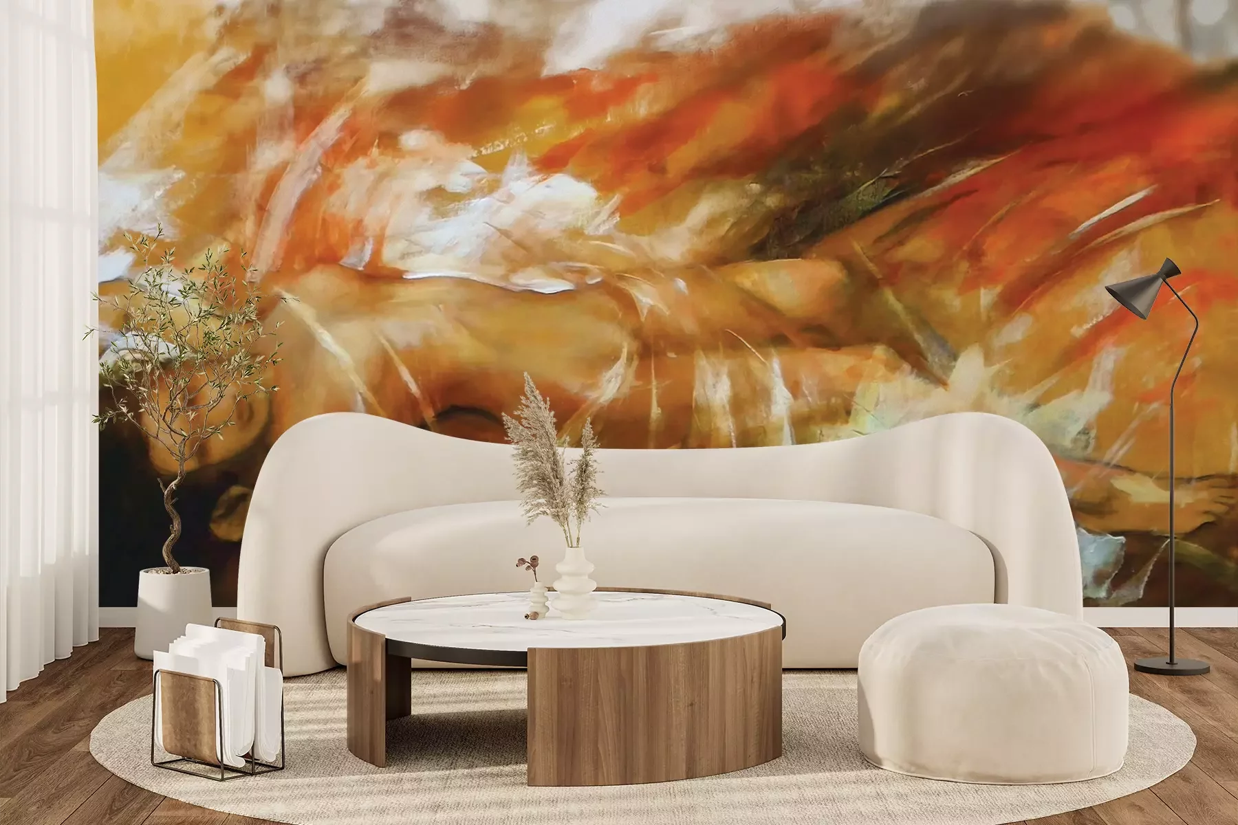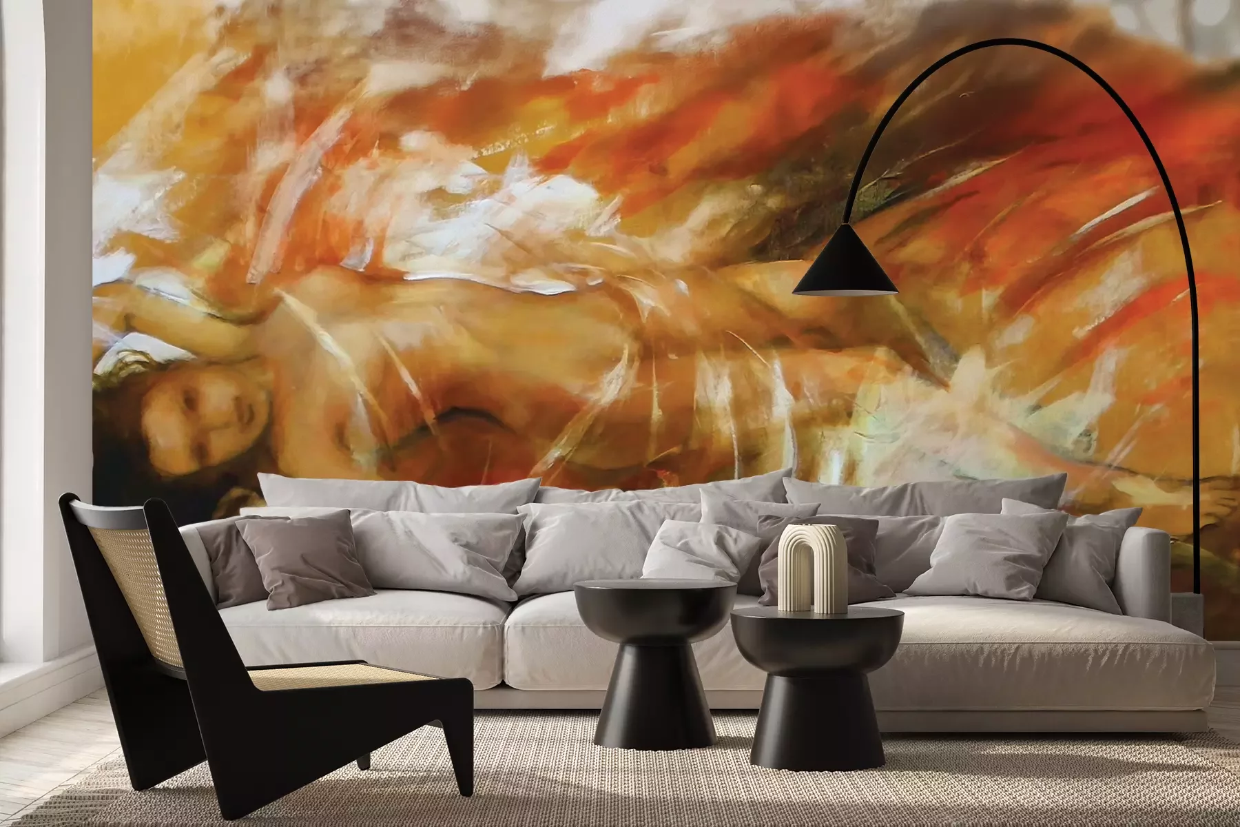 Het materiaal Premium+ is een gestructureerd vinyl op vlies met een gewicht van 255 g/m², dat kleine oneffenheden in de muur effectief camoufleert. De subtiele structuur van fijn zand geeft het oppervlak een exclusieve uitstraling, terwijl de halfmatte afwerking de diepte van de kleuren benadrukt. Het materiaal is dampdoorlatend, waardoor het ook in de keuken en badkamer kan worden gebruikt. De maximale breedte van één baan bedraagt 100 cm – bij grotere afmetingen wordt het fotobehang in meerdere gelijke banen verdeeld. De lijm wordt direct op de muur aangebracht en het behang wordt rand-aan-rand geplakt, wat zorgt voor een esthetisch resultaat zonder zichtbare naden. Het oppervlak kan gemakkelijk worden schoongemaakt door het voorzichtig af te nemen met een vochtige doek.