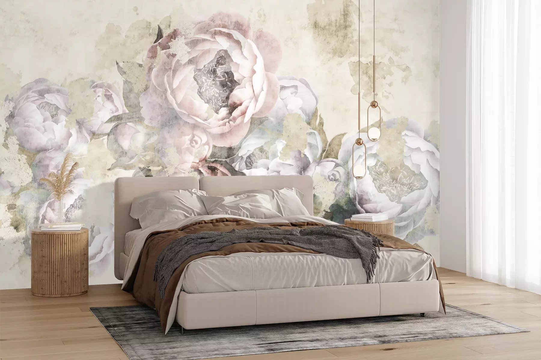 Het materiaal Premium+ is een gestructureerd vinyl op vlies met een gewicht van 255 g/m², dat kleine oneffenheden in de muur effectief camoufleert. De subtiele structuur van fijn zand geeft het oppervlak een exclusieve uitstraling, terwijl de halfmatte afwerking de diepte van de kleuren benadrukt. Het materiaal is dampdoorlatend, waardoor het ook in de keuken en badkamer kan worden gebruikt. De maximale breedte van één baan bedraagt 100 cm – bij grotere afmetingen wordt het fotobehang in meerdere gelijke banen verdeeld. De lijm wordt direct op de muur aangebracht en het behang wordt rand-aan-rand geplakt, wat zorgt voor een esthetisch resultaat zonder zichtbare naden. Het oppervlak kan gemakkelijk worden schoongemaakt door het voorzichtig af te nemen met een vochtige doek.
