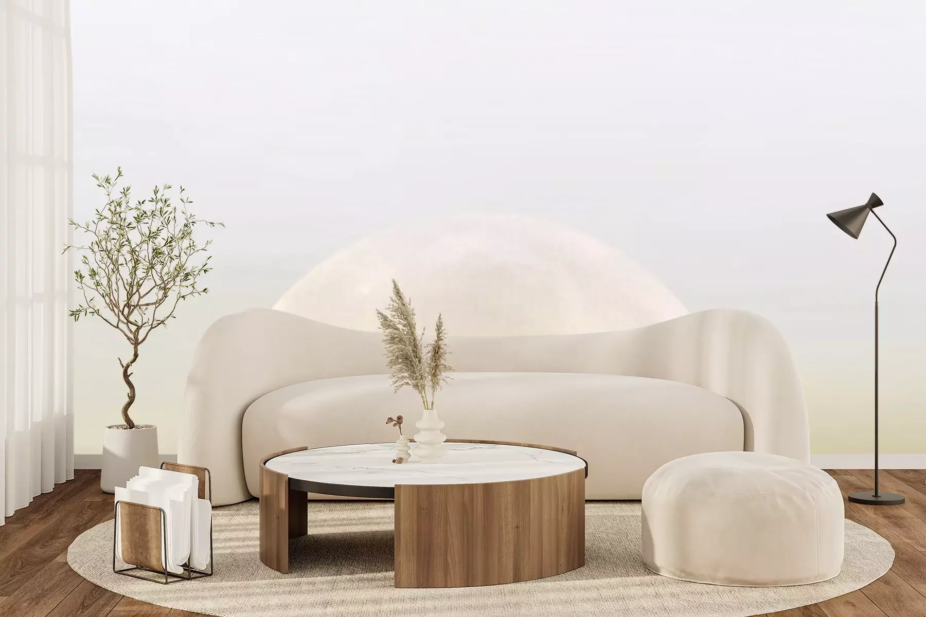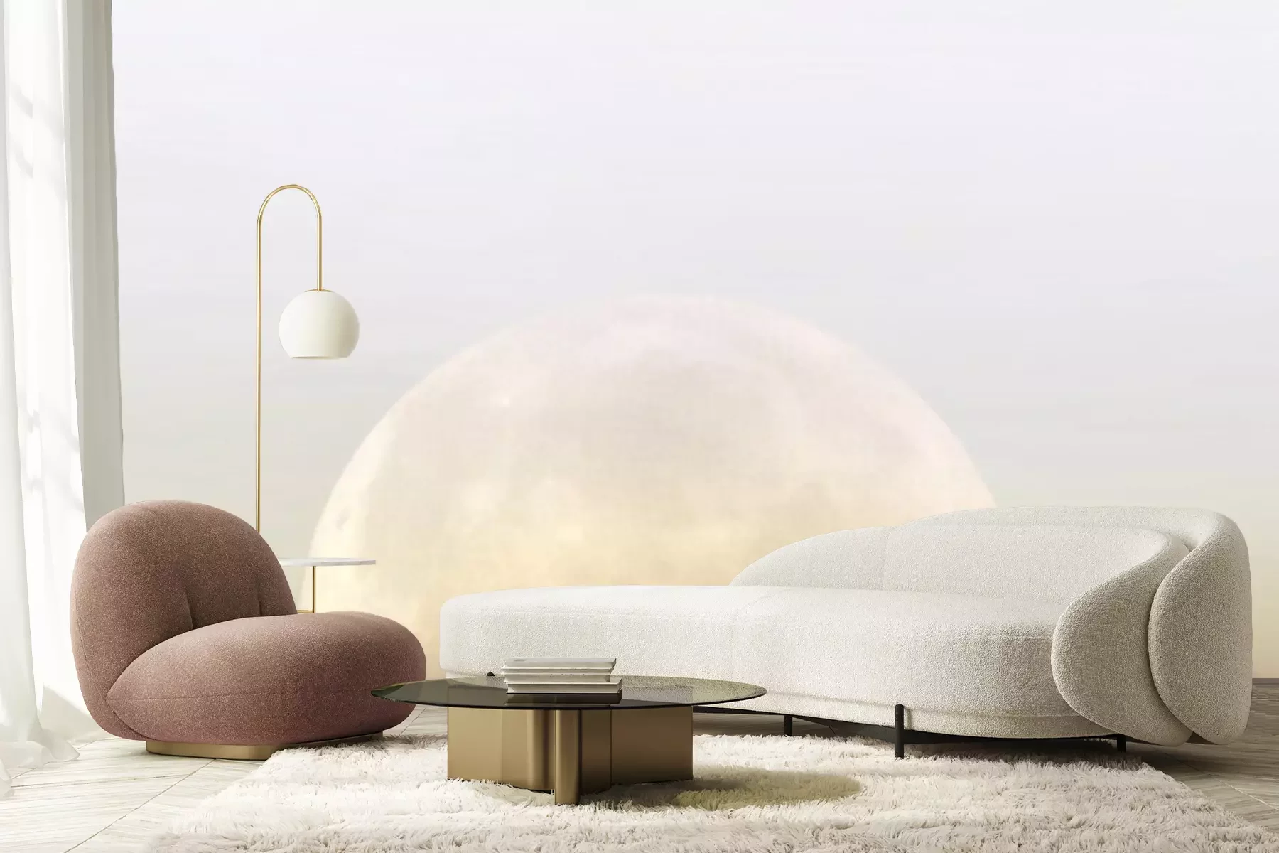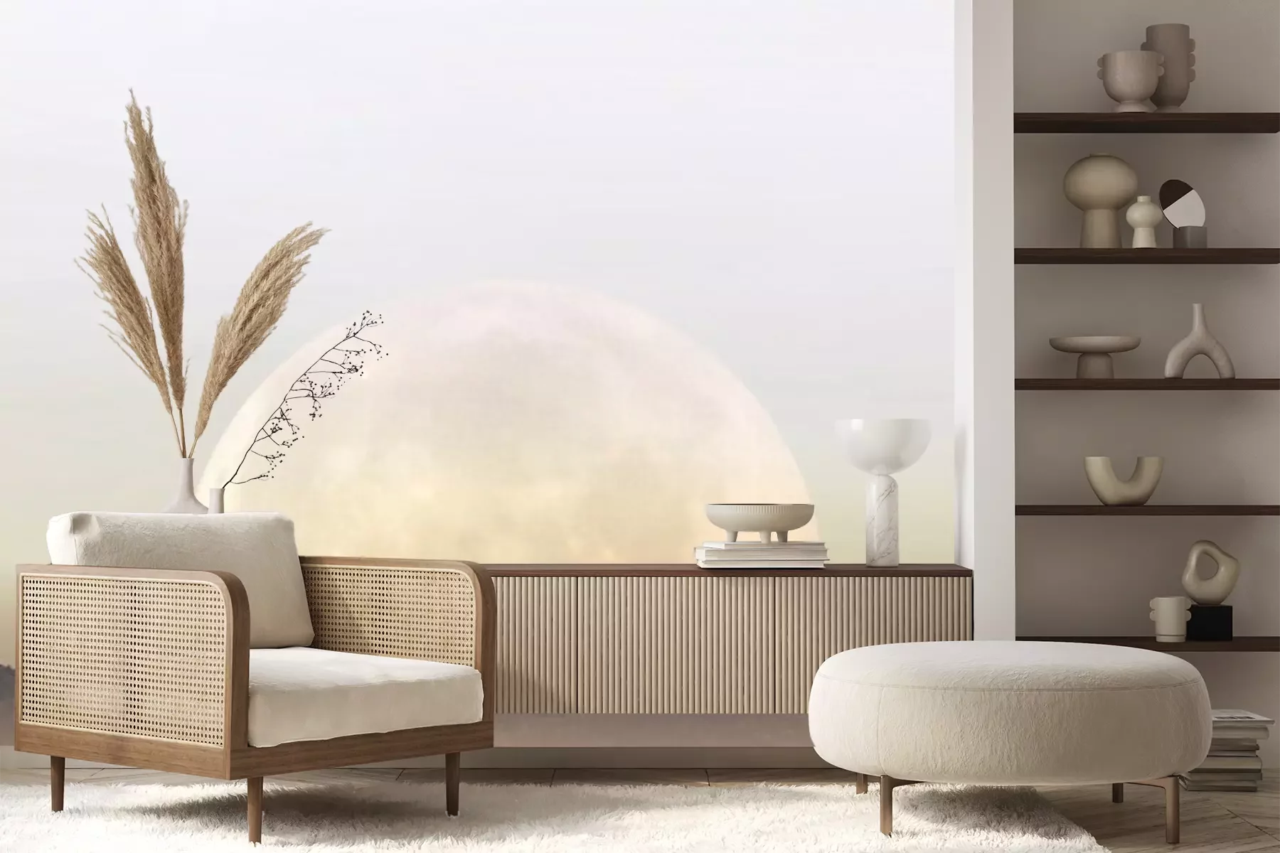 Fotobehang Surrealistisch landschap van de bergen in het maanlicht