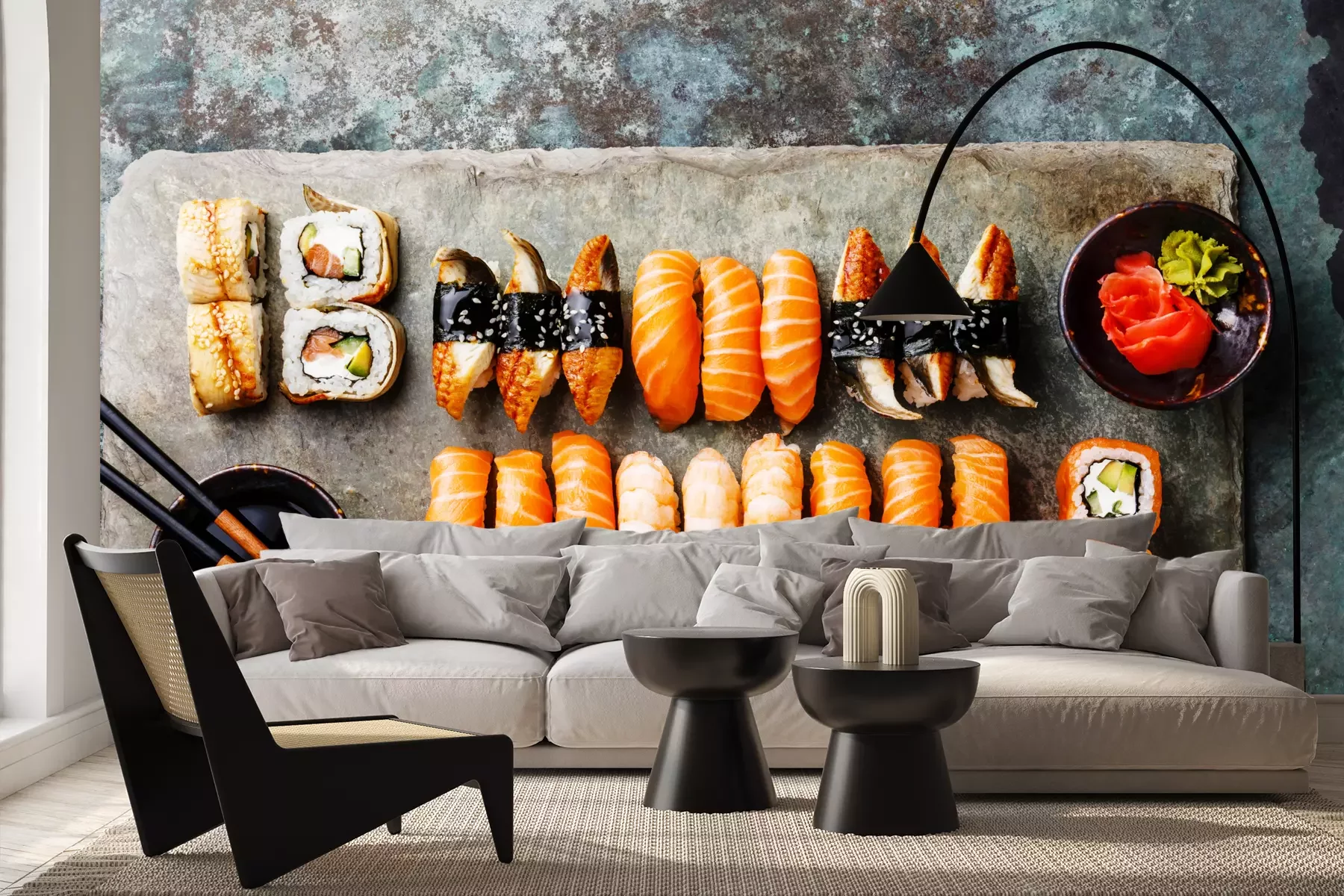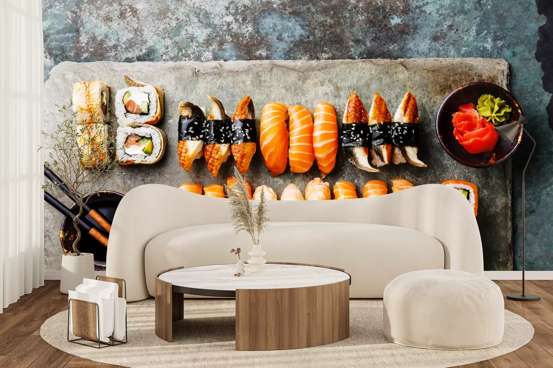 Het materiaal Premium+ is een gestructureerd vinyl op vlies met een gewicht van 255 g/m², dat kleine oneffenheden in de muur effectief camoufleert. De subtiele structuur van fijn zand geeft het oppervlak een exclusieve uitstraling, terwijl de halfmatte afwerking de diepte van de kleuren benadrukt. Het materiaal is dampdoorlatend, waardoor het ook in de keuken en badkamer kan worden gebruikt. De maximale breedte van één baan bedraagt 100 cm – bij grotere afmetingen wordt het fotobehang in meerdere gelijke banen verdeeld. De lijm wordt direct op de muur aangebracht en het behang wordt rand-aan-rand geplakt, wat zorgt voor een esthetisch resultaat zonder zichtbare naden. Het oppervlak kan gemakkelijk worden schoongemaakt door het voorzichtig af te nemen met een vochtige doek.