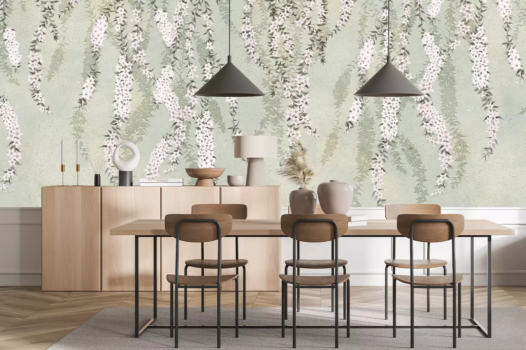 Het materiaal Standard is een hoogwaardig latexmateriaal met een glad, mat oppervlak. Dankzij de HP Latex-printtechnologie zijn de kleuren intens, duurzaam en UV-bestendig, waardoor het patroon jarenlang een onberispelijke uitstraling behoudt. Vervuilde oppervlakken kunnen voorzichtig worden afgeveegd met een droge doek. De maximale breedte van één baan bedraagt 95 cm of 105 cm – afhankelijk van de bestelde fotobehangbreedte. Bij grotere afmetingen wordt het patroon verdeeld over meerdere gelijkmatige banen. Het fotobehang wordt rand-aan-randaangebracht, wat vrijwel onzichtbare naden mogelijk maakt.