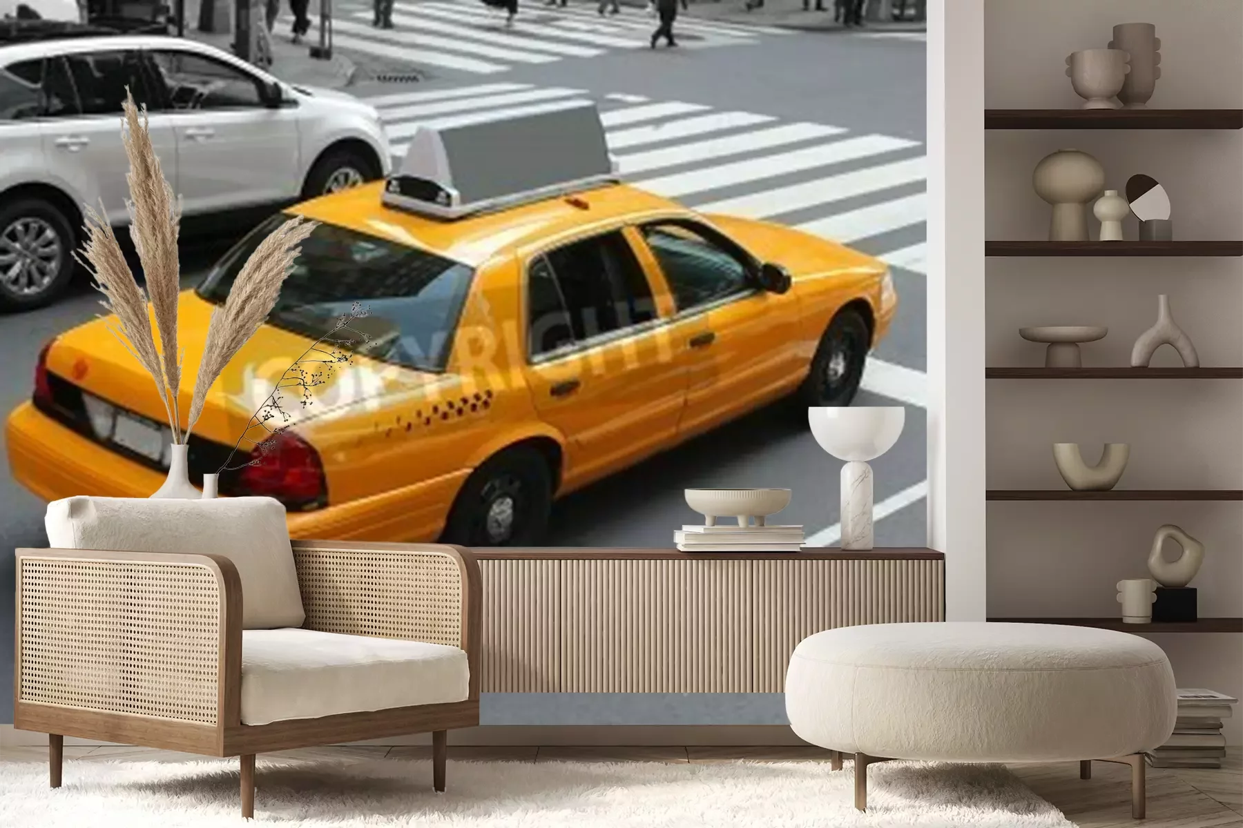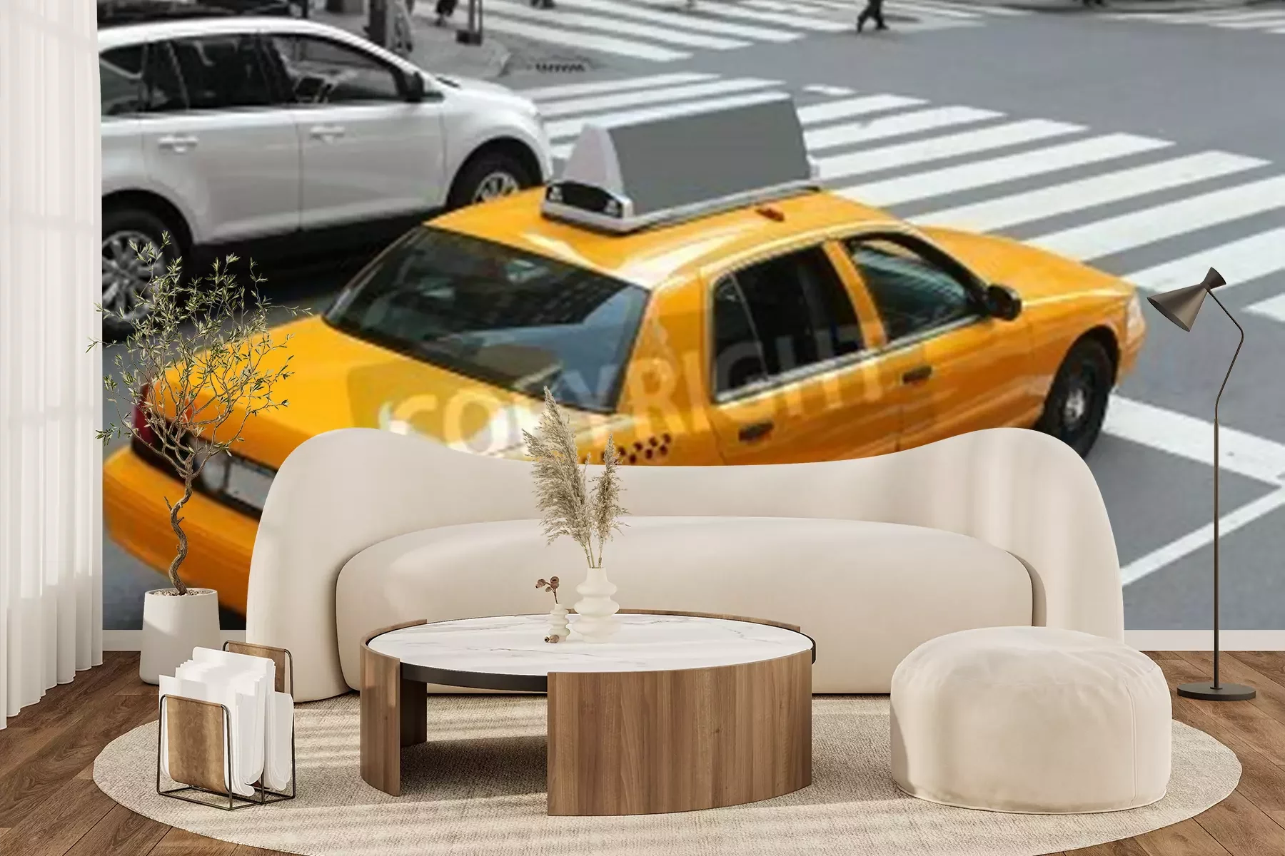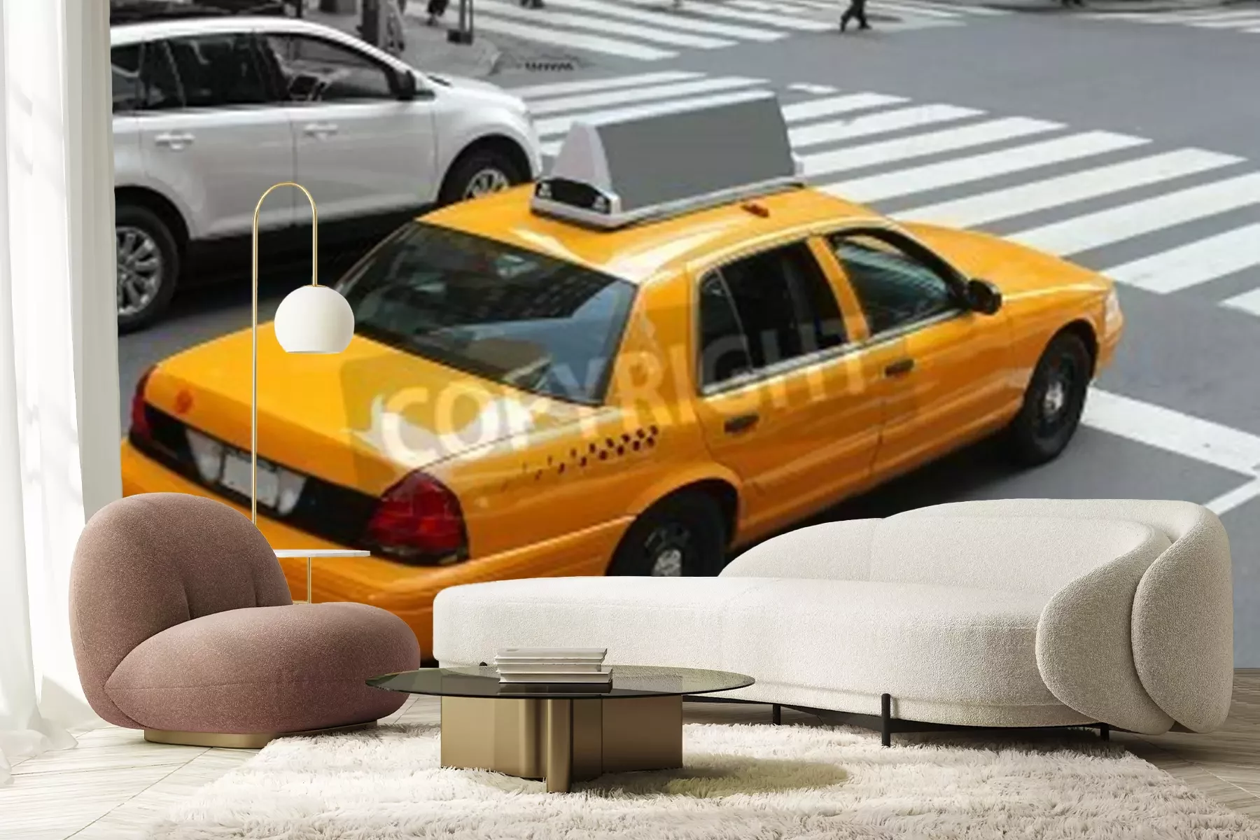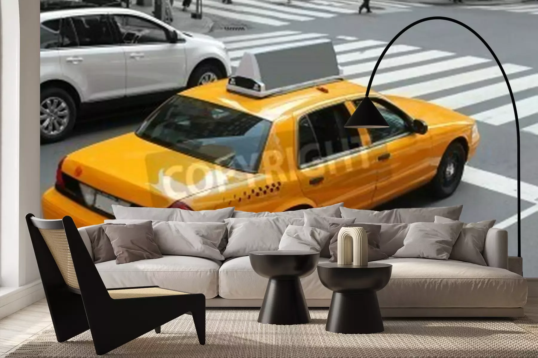 Fotobehang Taxi met een grijze straat op de achtergrond