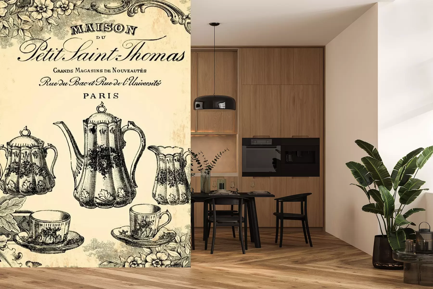 Het materiaal Premium is een glad vinyl op vlies, dat bestand is tegen uitrekken en vervorming. Het is dampdoorlatend – de muren kunnen vrij ademen – waardoor het geschikt is voor gebruik in de keuken en badkamer. Bij vervuiling kan het materiaal worden afgenomen met een vochtige doek. De maximale breedte van één baan bedraagt 95 of 105 cm, afhankelijk van de beschikbaarheid. Montage vindt plaats met de rand-aan-rand methode, wat een esthetisch resultaat zonder zichtbare naden oplevert. Omdat de lijm rechtstreeks op de muur wordt aangebracht, verloopt de installatie van het fotobehang snel en eenvoudig.