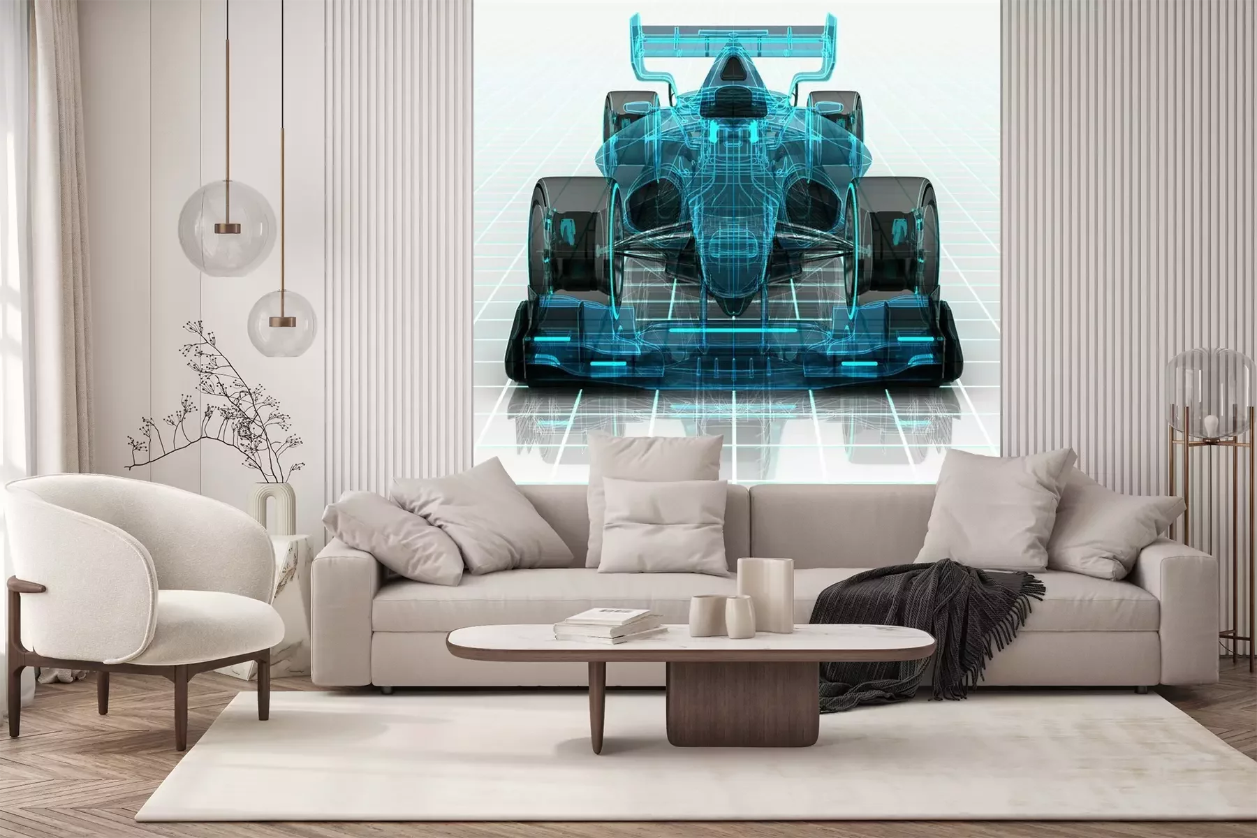 Het fotobehang wordt geleverd in banen. De afmetingen en het aantal banen waaruit het volledige fotobehang bestaat, zijn afhankelijk van het gekozen materiaal. Wanneer het formaat de maximale materiaalbreedte overschrijdt, bestaat de print uit meerdere gelijkmatige banen.