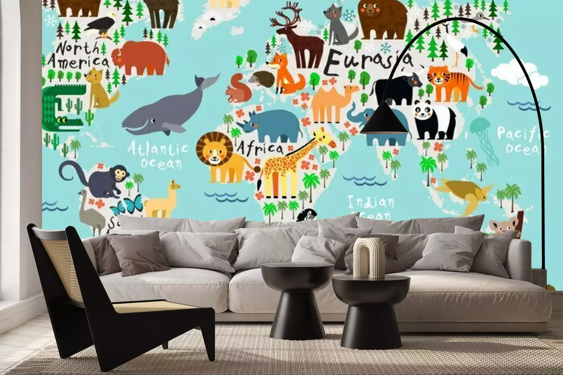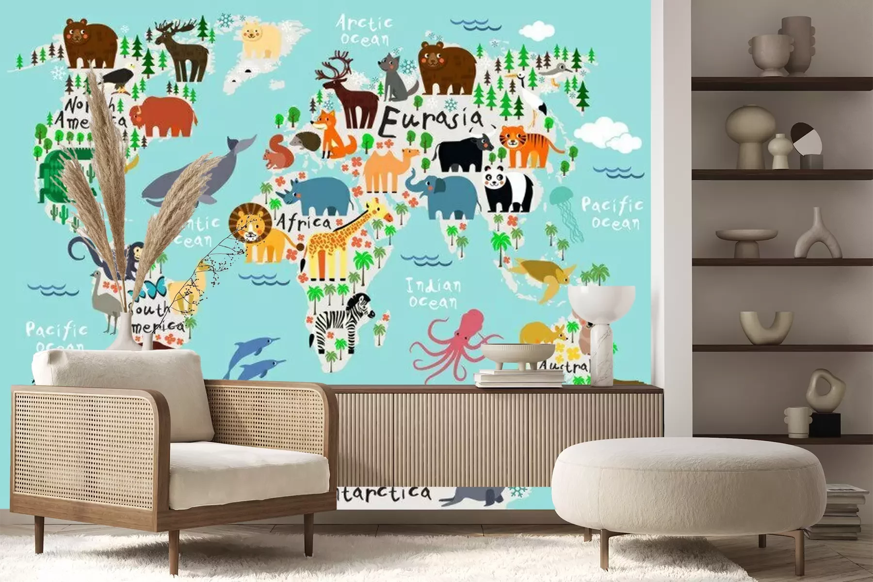 Wereldkaart met dierenProbleemloze bezorging verzorgd door vertrouwde vervoerders