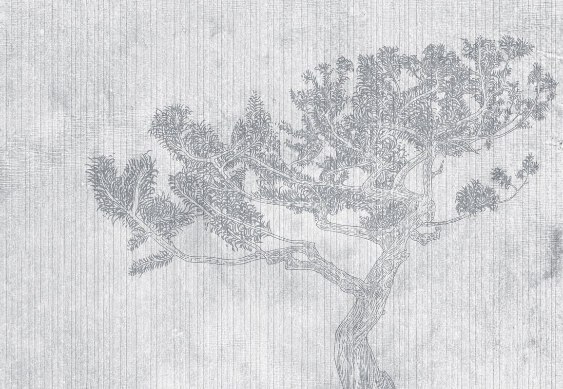 Fotobehang: Tekening van een bonsaiboom in grijstinten