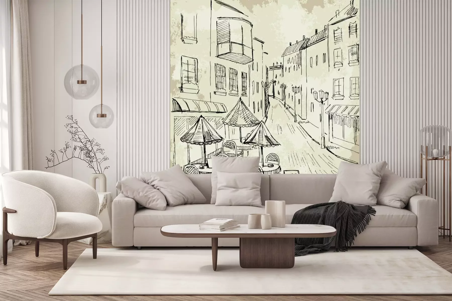 Het materiaal Premium+ is een gestructureerd vinyl op vlies met een gewicht van 255 g/m², dat kleine oneffenheden in de muur effectief camoufleert. De subtiele structuur van fijn zand geeft het oppervlak een exclusieve uitstraling, terwijl de halfmatte afwerking de diepte van de kleuren benadrukt. Het materiaal is dampdoorlatend, waardoor het ook in de keuken en badkamer kan worden gebruikt. De maximale breedte van één baan bedraagt 100 cm – bij grotere afmetingen wordt het fotobehang in meerdere gelijke banen verdeeld. De lijm wordt direct op de muur aangebracht en het behang wordt rand-aan-rand geplakt, wat zorgt voor een esthetisch resultaat zonder zichtbare naden. Het oppervlak kan gemakkelijk worden schoongemaakt door het voorzichtig af te nemen met een vochtige doek.