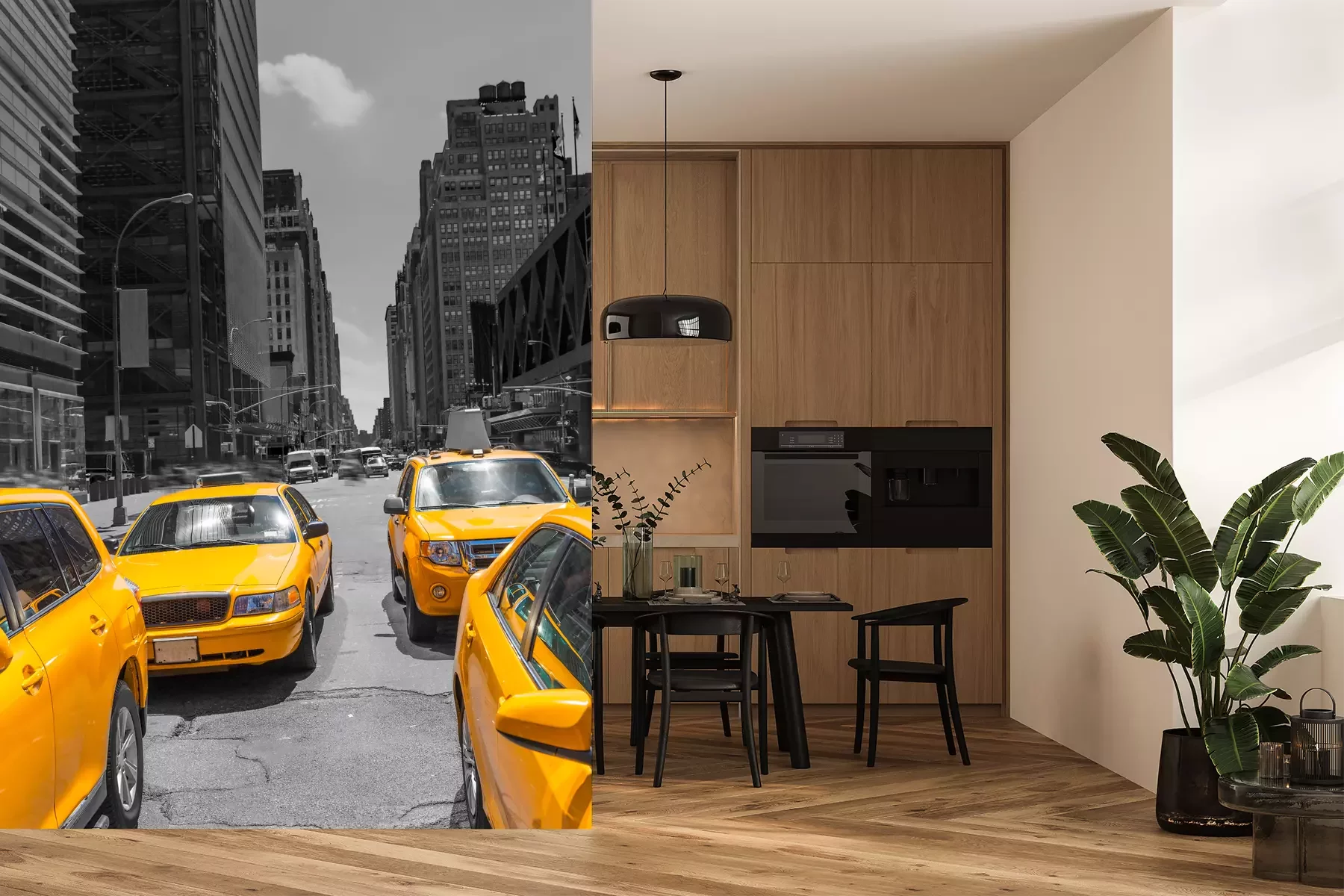 Het materiaal Premium is een glad vinyl op vlies, dat bestand is tegen uitrekken en vervorming. Het is dampdoorlatend – de muren kunnen vrij ademen – waardoor het geschikt is voor gebruik in de keuken en badkamer. Bij vervuiling kan het materiaal worden afgenomen met een vochtige doek. De maximale breedte van één baan bedraagt 95 of 105 cm, afhankelijk van de beschikbaarheid. Montage vindt plaats met de rand-aan-rand methode, wat een esthetisch resultaat zonder zichtbare naden oplevert. Omdat de lijm rechtstreeks op de muur wordt aangebracht, verloopt de installatie van het fotobehang snel en eenvoudig.