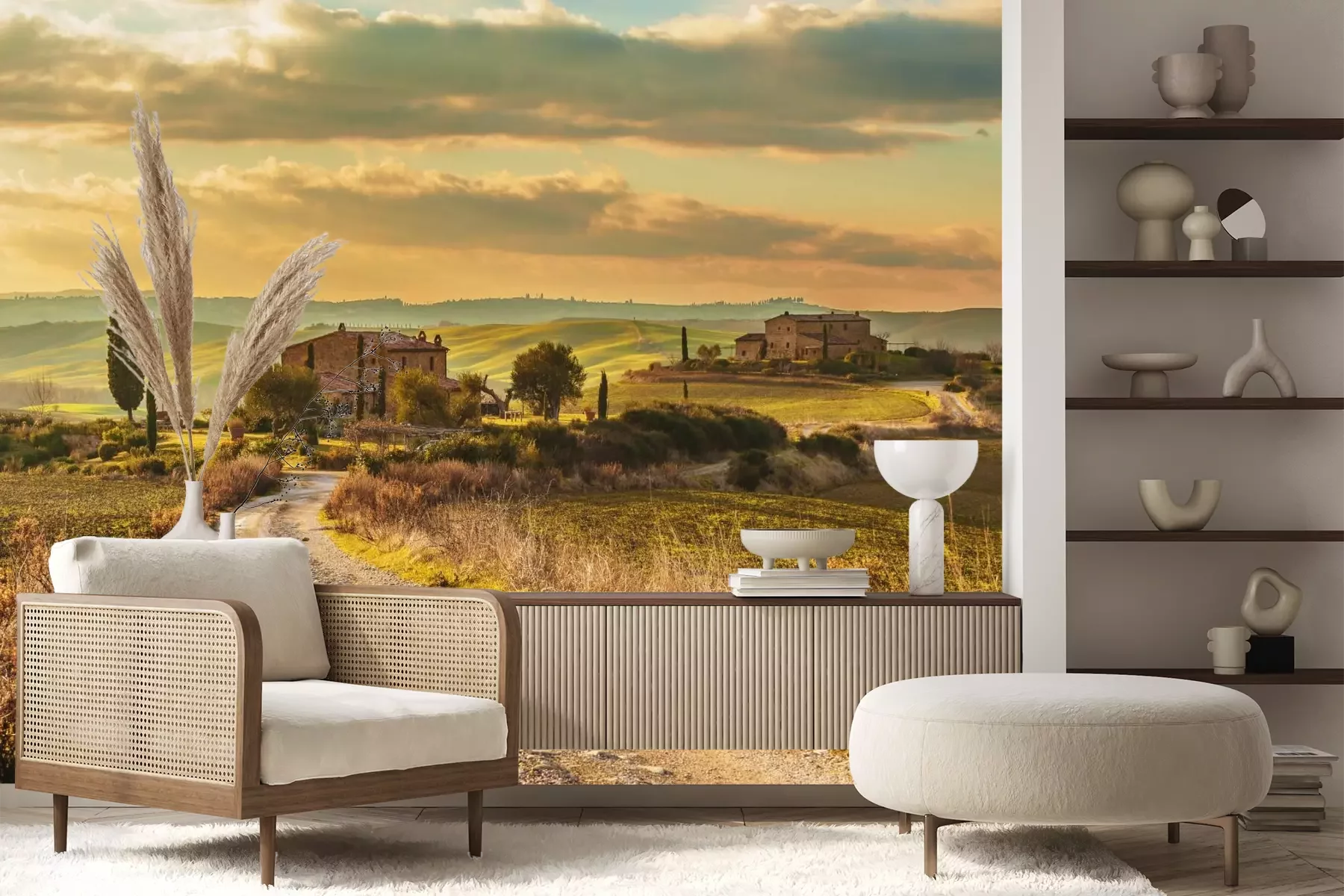 Het materiaal Premium+ is een gestructureerd vinyl op vlies met een gewicht van 255 g/m², dat kleine oneffenheden in de muur effectief camoufleert. De subtiele structuur van fijn zand geeft het oppervlak een exclusieve uitstraling, terwijl de halfmatte afwerking de diepte van de kleuren benadrukt. Het materiaal is dampdoorlatend, waardoor het ook in de keuken en badkamer kan worden gebruikt. De maximale breedte van één baan bedraagt 100 cm – bij grotere afmetingen wordt het fotobehang in meerdere gelijke banen verdeeld. De lijm wordt direct op de muur aangebracht en het behang wordt rand-aan-rand geplakt, wat zorgt voor een esthetisch resultaat zonder zichtbare naden. Het oppervlak kan gemakkelijk worden schoongemaakt door het voorzichtig af te nemen met een vochtige doek.