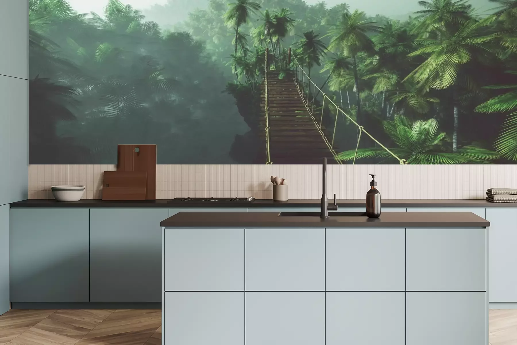 Het materiaal Premium is een glad vinyl op vlies, dat bestand is tegen uitrekken en vervorming. Het is dampdoorlatend – de muren kunnen vrij ademen – waardoor het geschikt is voor gebruik in de keuken en badkamer. Bij vervuiling kan het materiaal worden afgenomen met een vochtige doek. De maximale breedte van één baan bedraagt 95 of 105 cm, afhankelijk van de beschikbaarheid. Montage vindt plaats met de rand-aan-rand methode, wat een esthetisch resultaat zonder zichtbare naden oplevert. Omdat de lijm rechtstreeks op de muur wordt aangebracht, verloopt de installatie van het fotobehang snel en eenvoudig.