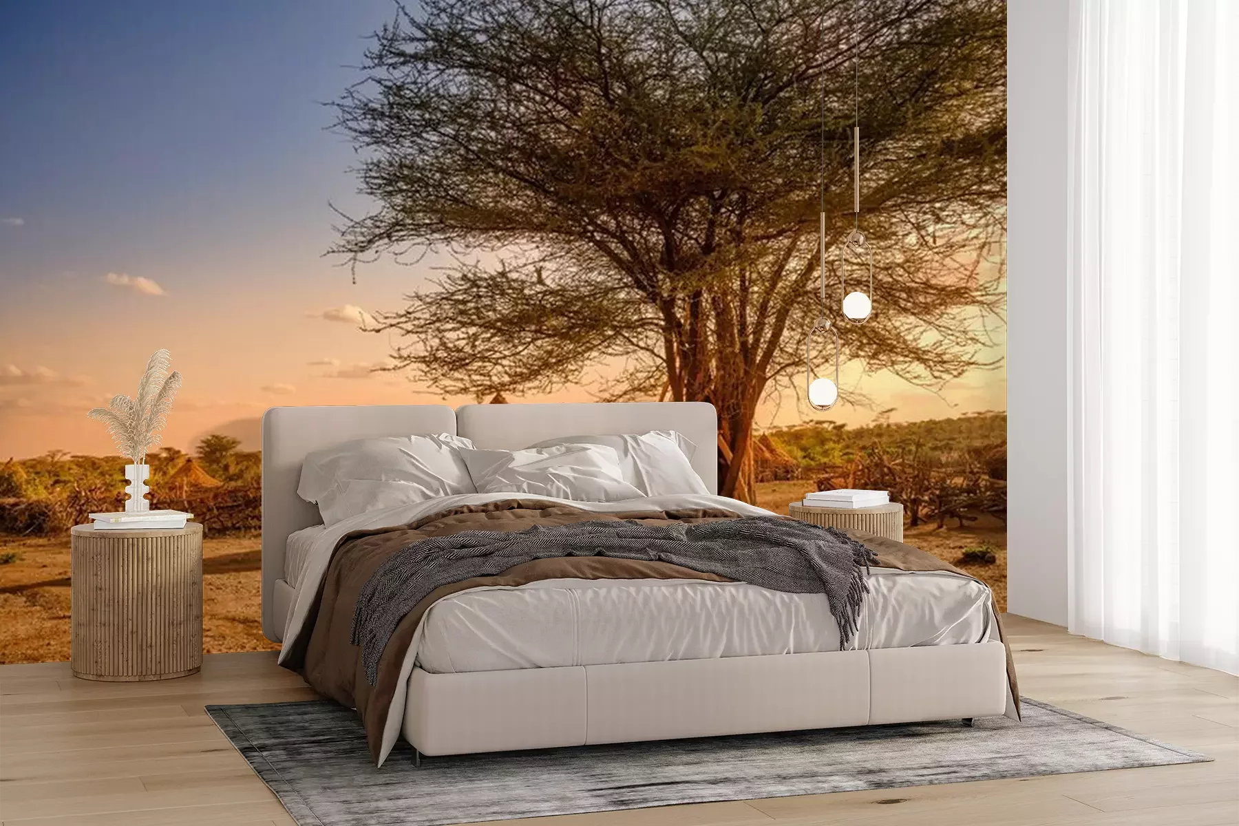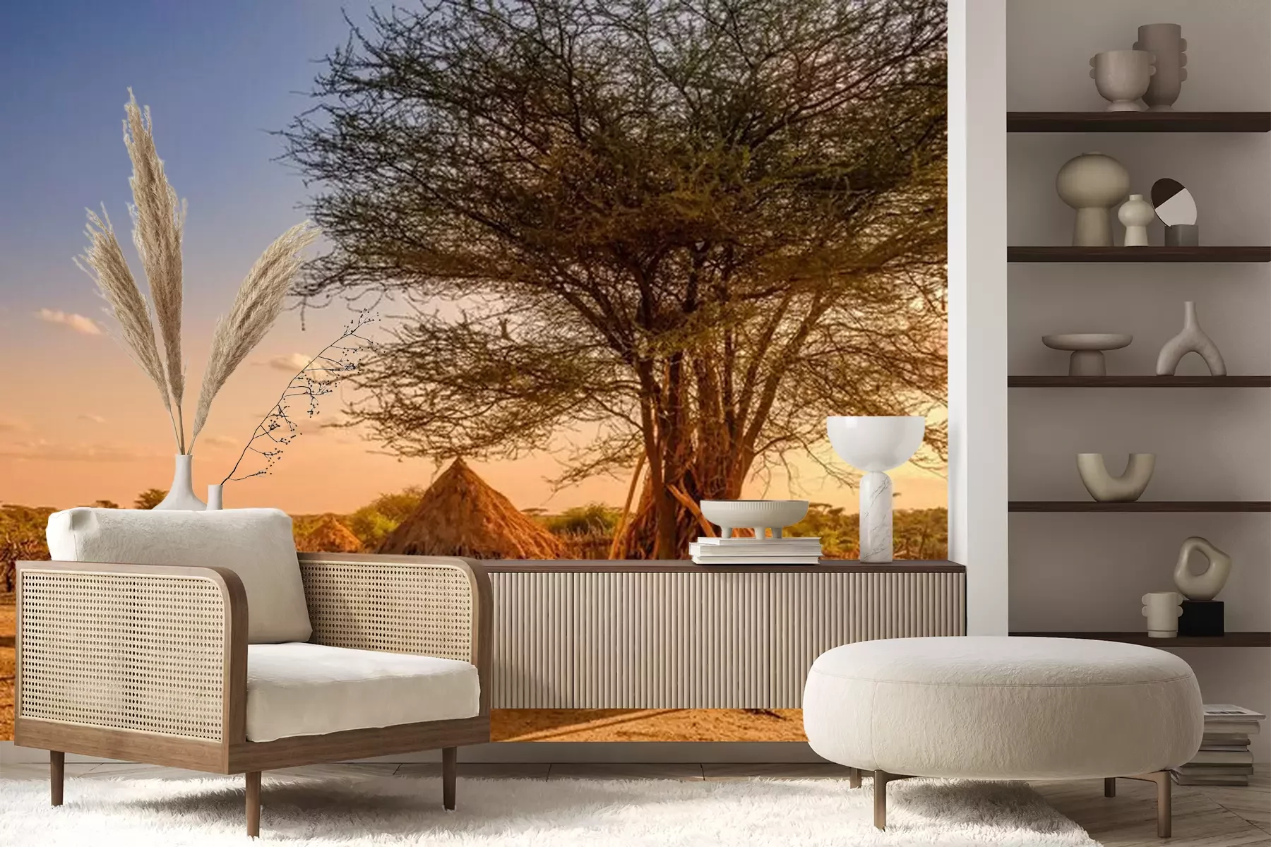 Het materiaal Premium+ is een gestructureerd vinyl op vlies met een gewicht van 255 g/m², dat kleine oneffenheden in de muur effectief camoufleert. De subtiele structuur van fijn zand geeft het oppervlak een exclusieve uitstraling, terwijl de halfmatte afwerking de diepte van de kleuren benadrukt. Het materiaal is dampdoorlatend, waardoor het ook in de keuken en badkamer kan worden gebruikt. De maximale breedte van één baan bedraagt 100 cm – bij grotere afmetingen wordt het fotobehang in meerdere gelijke banen verdeeld. De lijm wordt direct op de muur aangebracht en het behang wordt rand-aan-rand geplakt, wat zorgt voor een esthetisch resultaat zonder zichtbare naden. Het oppervlak kan gemakkelijk worden schoongemaakt door het voorzichtig af te nemen met een vochtige doek.