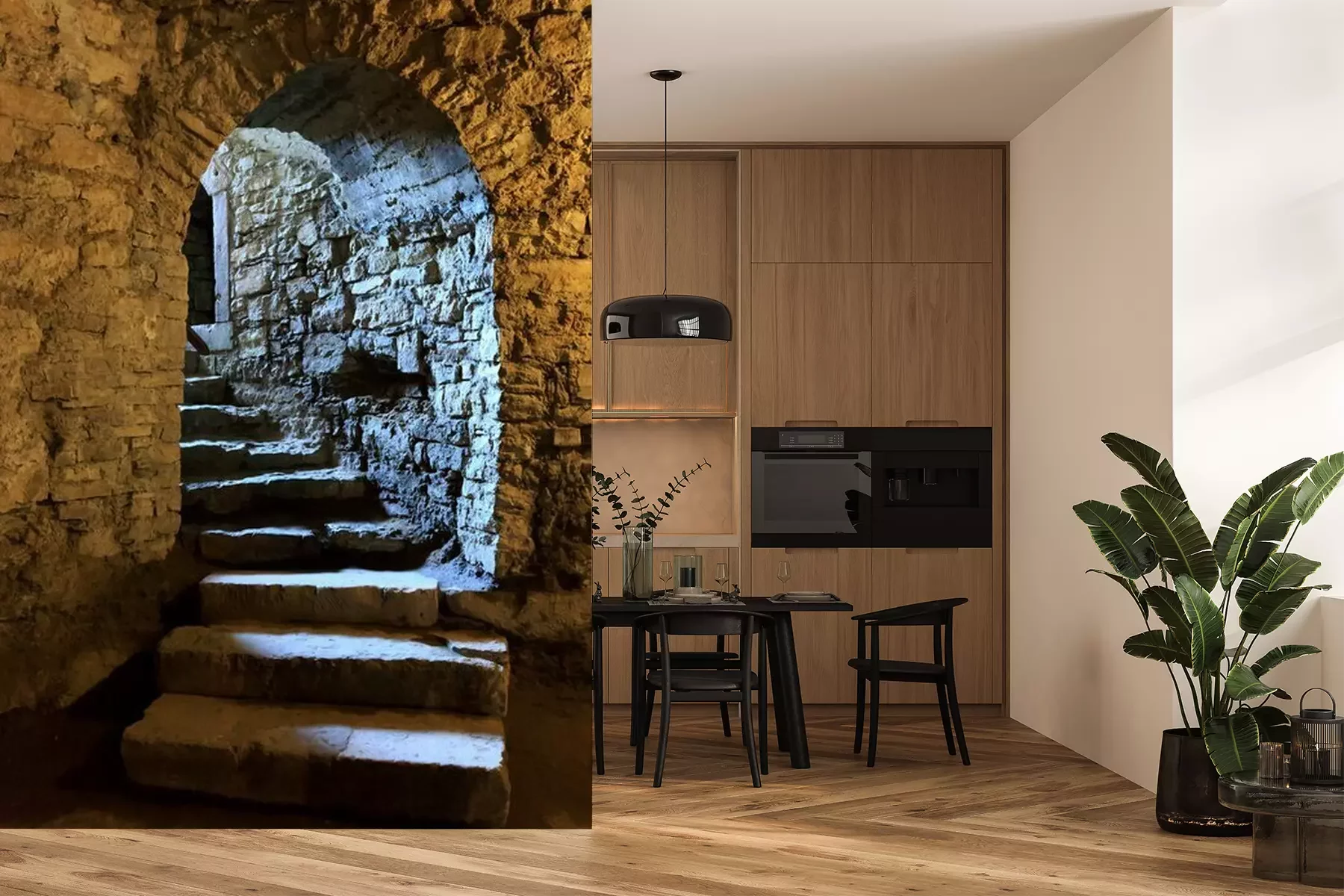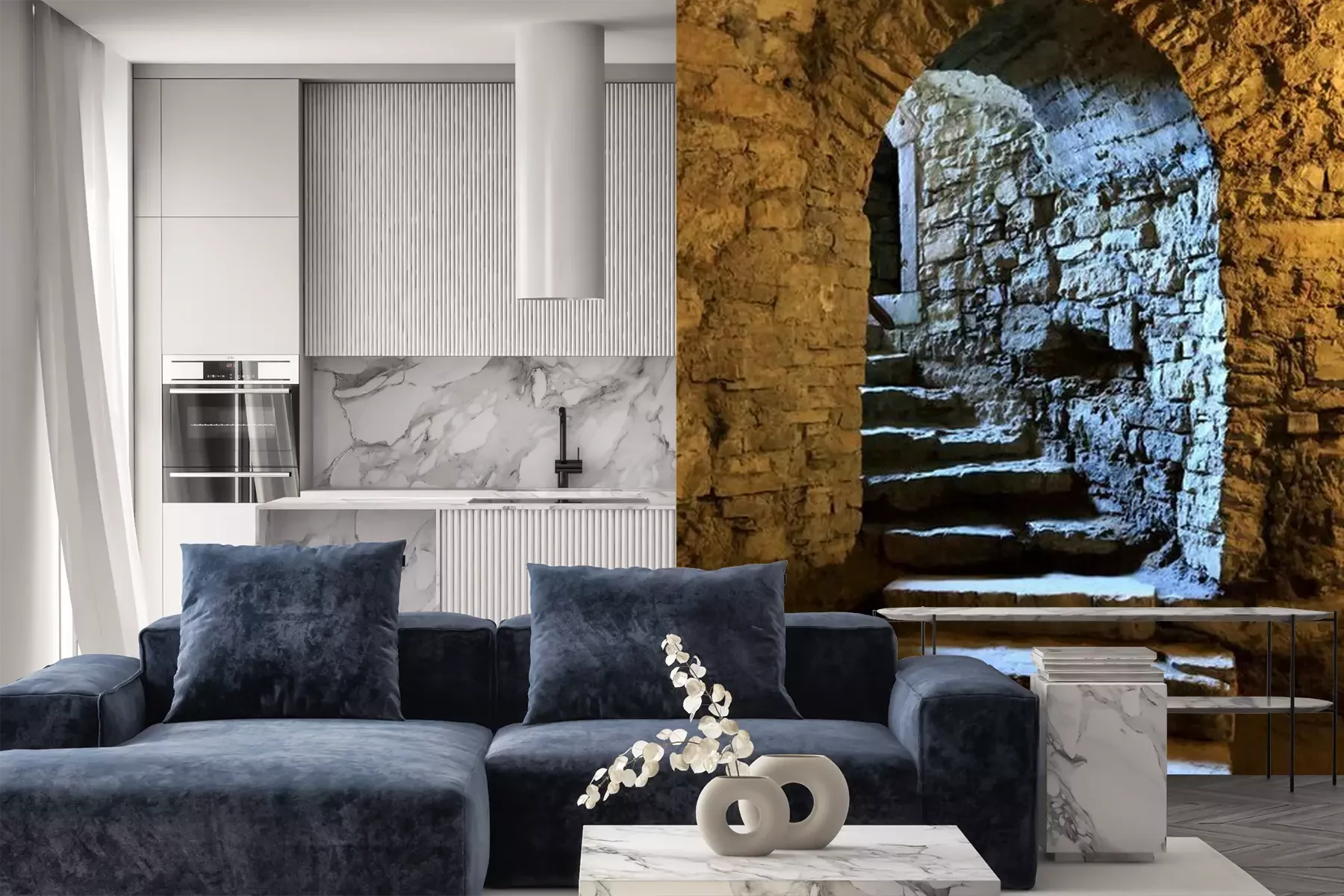 Fotobehang Trap in de kelder van het kasteel