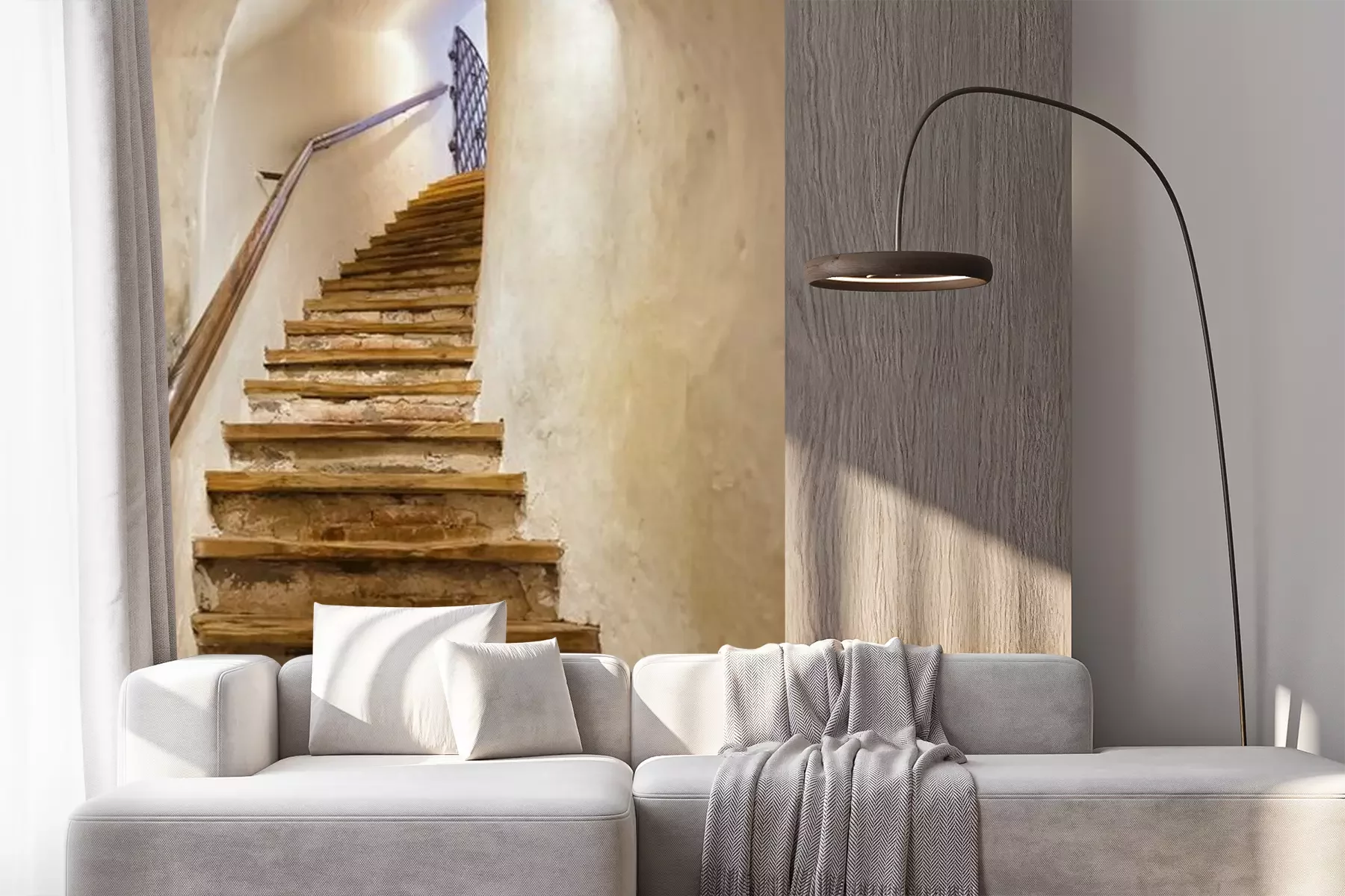 Het materiaal Premium+ is een gestructureerd vinyl op vlies met een gewicht van 255 g/m², dat kleine oneffenheden in de muur effectief camoufleert. De subtiele structuur van fijn zand geeft het oppervlak een exclusieve uitstraling, terwijl de halfmatte afwerking de diepte van de kleuren benadrukt. Het materiaal is dampdoorlatend, waardoor het ook in de keuken en badkamer kan worden gebruikt. De maximale breedte van één baan bedraagt 100 cm – bij grotere afmetingen wordt het fotobehang in meerdere gelijke banen verdeeld. De lijm wordt direct op de muur aangebracht en het behang wordt rand-aan-rand geplakt, wat zorgt voor een esthetisch resultaat zonder zichtbare naden. Het oppervlak kan gemakkelijk worden schoongemaakt door het voorzichtig af te nemen met een vochtige doek.