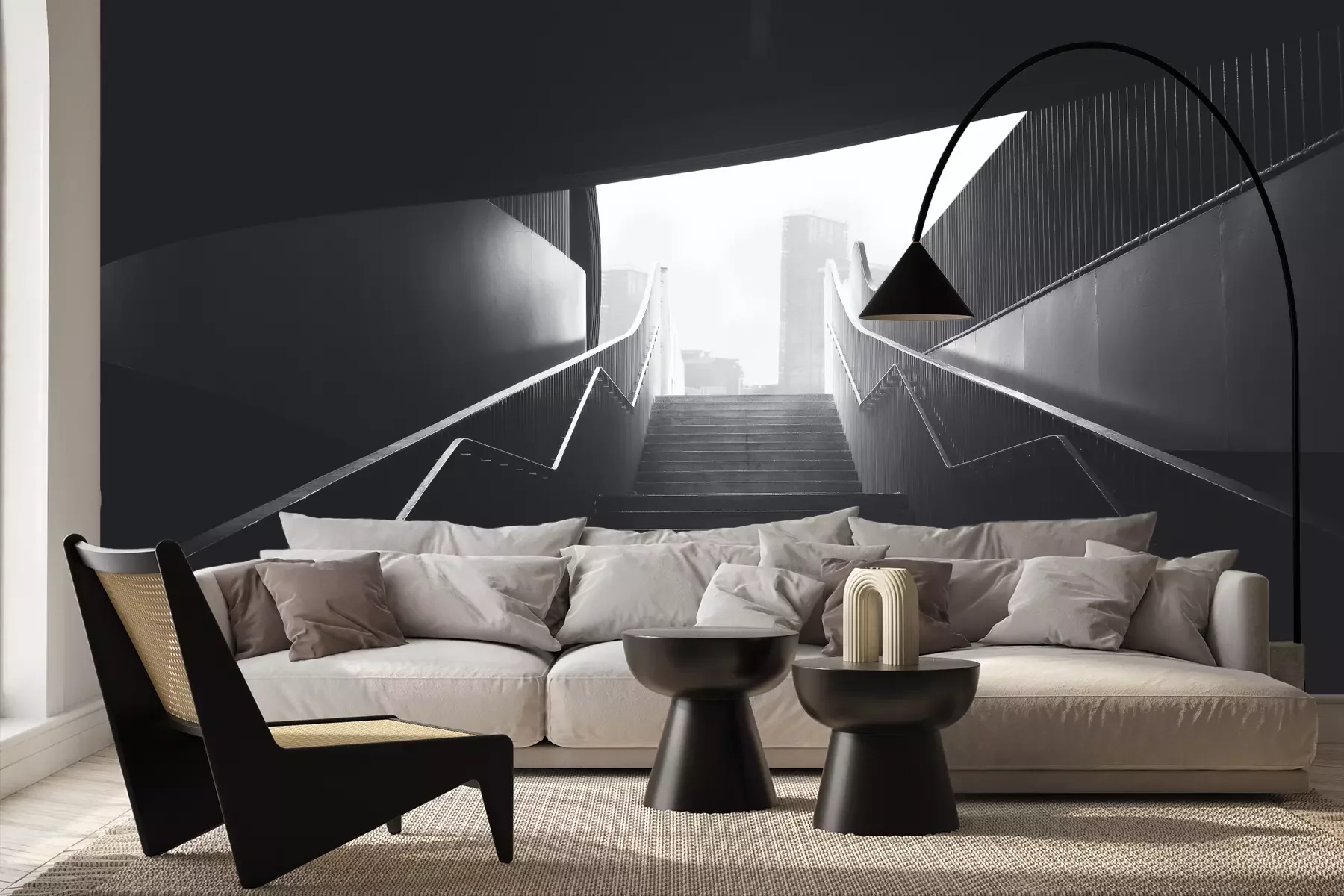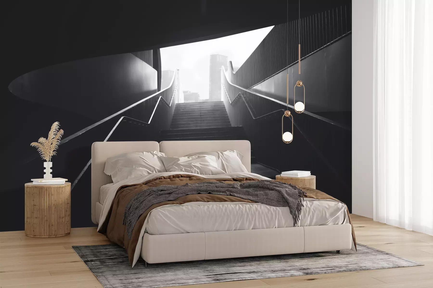Het materiaal Premium+ is een gestructureerd vinyl op vlies met een gewicht van 255 g/m², dat kleine oneffenheden in de muur effectief camoufleert. De subtiele structuur van fijn zand geeft het oppervlak een exclusieve uitstraling, terwijl de halfmatte afwerking de diepte van de kleuren benadrukt. Het materiaal is dampdoorlatend, waardoor het ook in de keuken en badkamer kan worden gebruikt. De maximale breedte van één baan bedraagt 100 cm – bij grotere afmetingen wordt het fotobehang in meerdere gelijke banen verdeeld. De lijm wordt direct op de muur aangebracht en het behang wordt rand-aan-rand geplakt, wat zorgt voor een esthetisch resultaat zonder zichtbare naden. Het oppervlak kan gemakkelijk worden schoongemaakt door het voorzichtig af te nemen met een vochtige doek.