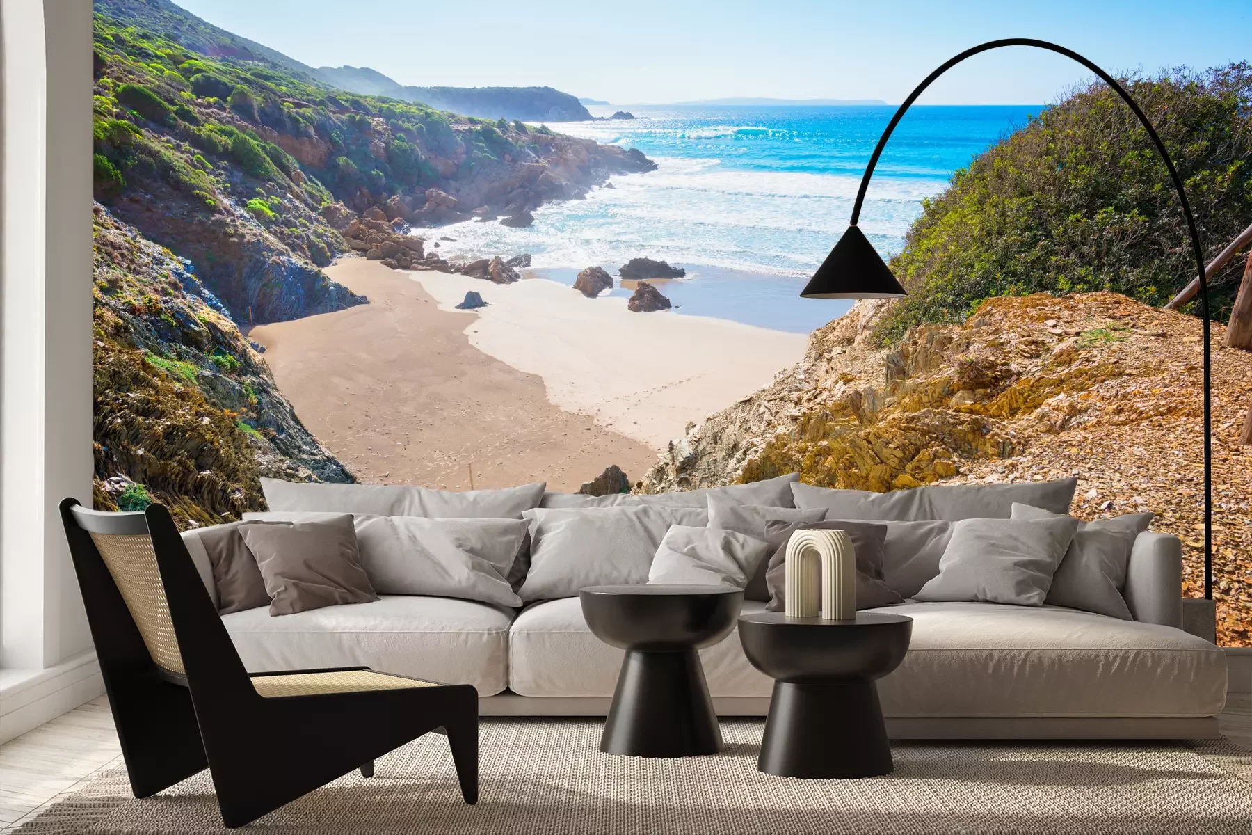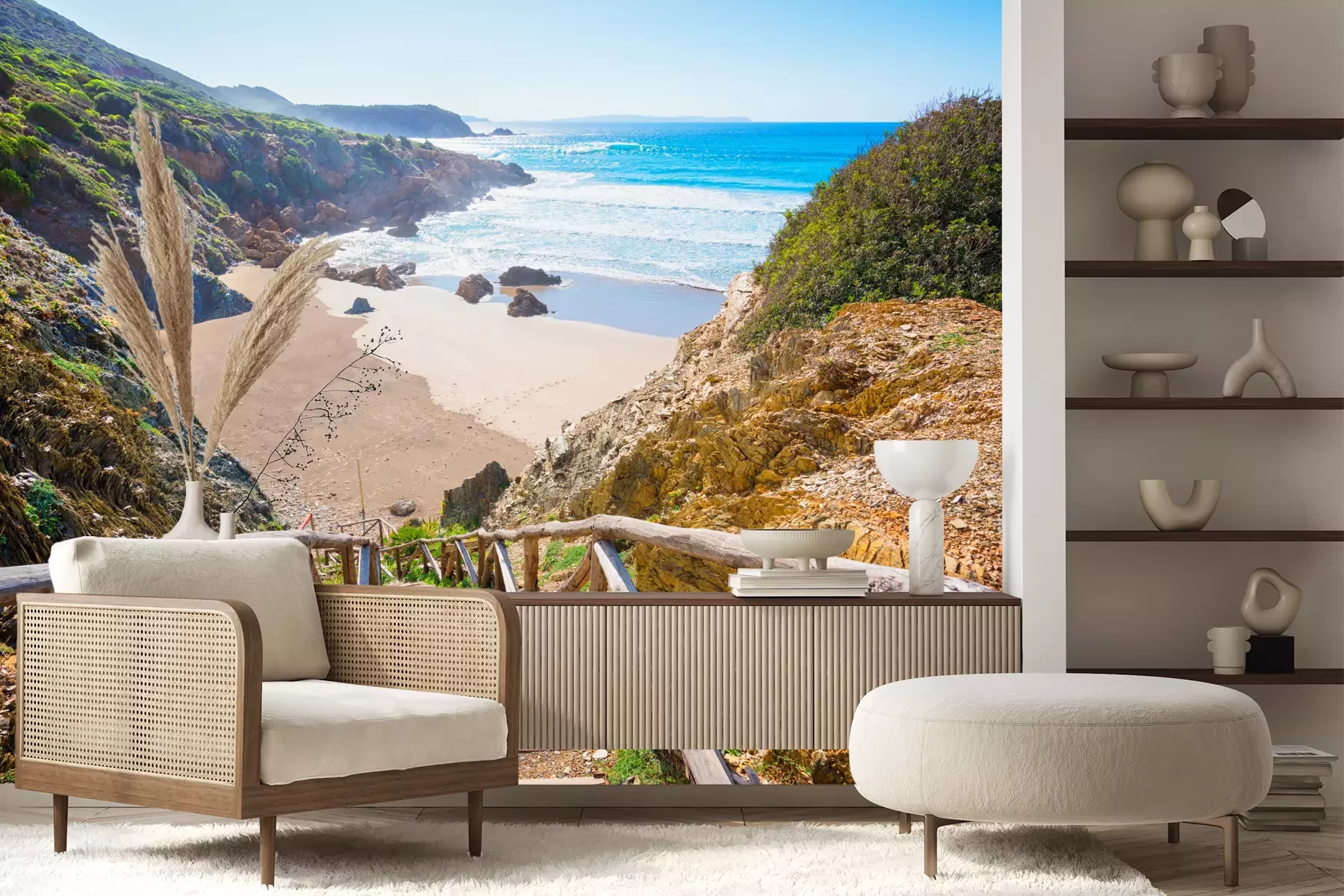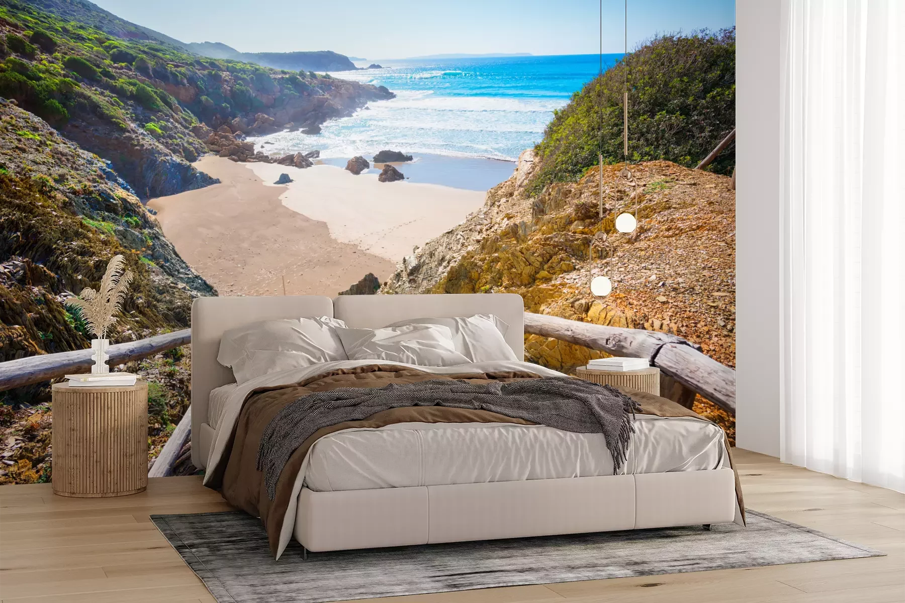 Het materiaal Premium+ is een gestructureerd vinyl op vlies met een gewicht van 255 g/m², dat kleine oneffenheden in de muur effectief camoufleert. De subtiele structuur van fijn zand geeft het oppervlak een exclusieve uitstraling, terwijl de halfmatte afwerking de diepte van de kleuren benadrukt. Het materiaal is dampdoorlatend, waardoor het ook in de keuken en badkamer kan worden gebruikt. De maximale breedte van één baan bedraagt 100 cm – bij grotere afmetingen wordt het fotobehang in meerdere gelijke banen verdeeld. De lijm wordt direct op de muur aangebracht en het behang wordt rand-aan-rand geplakt, wat zorgt voor een esthetisch resultaat zonder zichtbare naden. Het oppervlak kan gemakkelijk worden schoongemaakt door het voorzichtig af te nemen met een vochtige doek.