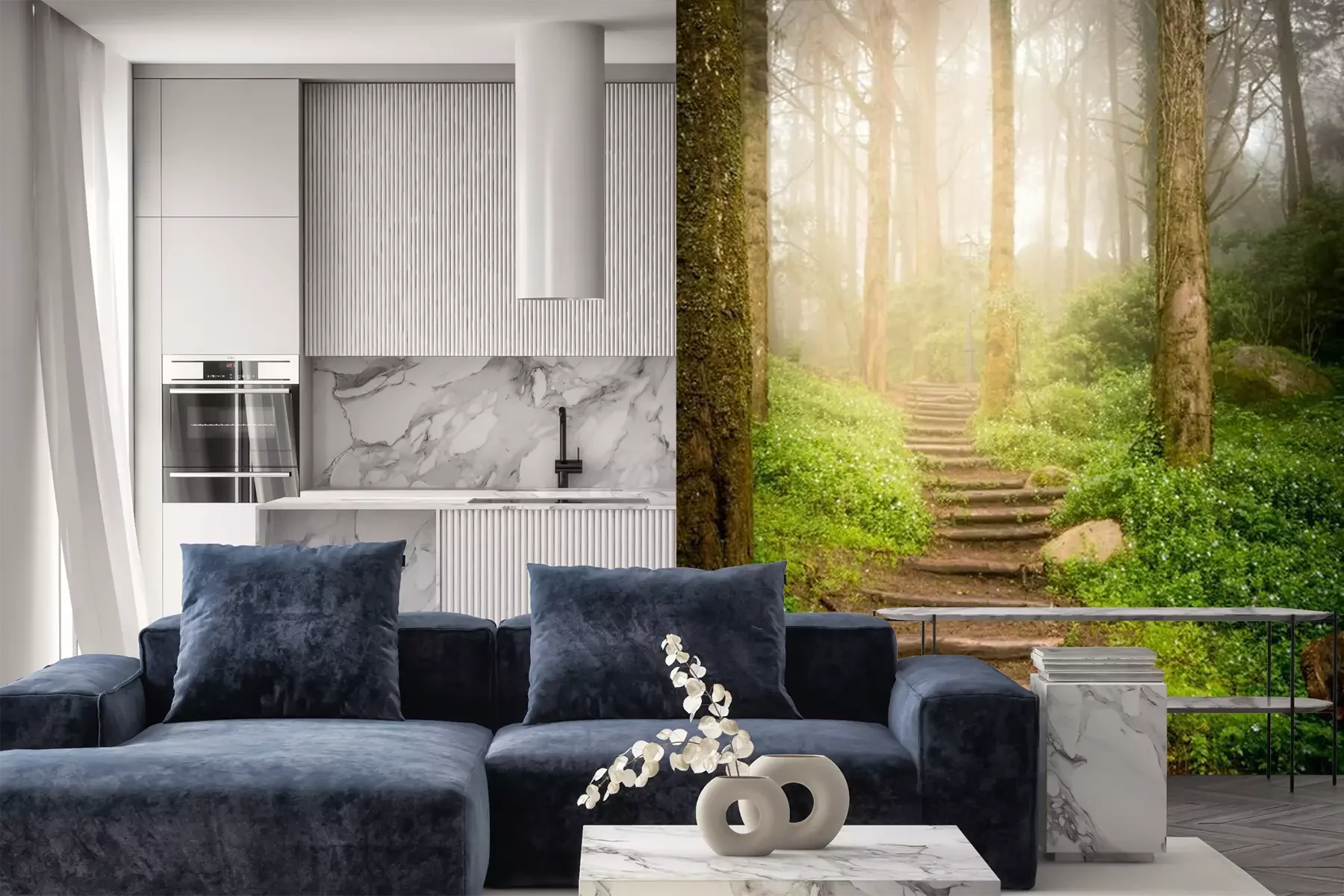*Korting is niet van toepassing op lijmen, accessoires en cadeaubonnen.Gepersonaliseerde fotobehang is de ideale oplossing wanneer je op zoek bent naar een eenvoudige, maar opvallende manier om je interieur te veranderen. Onze producten onderscheiden zich door hun hoge afwerkingskwaliteit, en dankzij de moderne HP Latex-druktechnologie garanderen we levendige kleuren die niet vervagen. Het fotobehang is bestand tegen mechanische beschadigingen, terwijl de extra optie van laminering bescherming biedt tegen de schadelijke effecten van water en vocht. Hierdoor zijn onze producten geschikt voor zowel woonruimtes — zoals de woonkamer, slaapkamer, kinderkamer of badkamer — als voor commerciële omgevingen. We bieden fotobehang op maat, dat perfect aansluit bij je interieur, evenals een ruime keuze aan ontwerpen die je bovendien kunt personaliseren door het aanpassen van het beeldkader of de kleur.