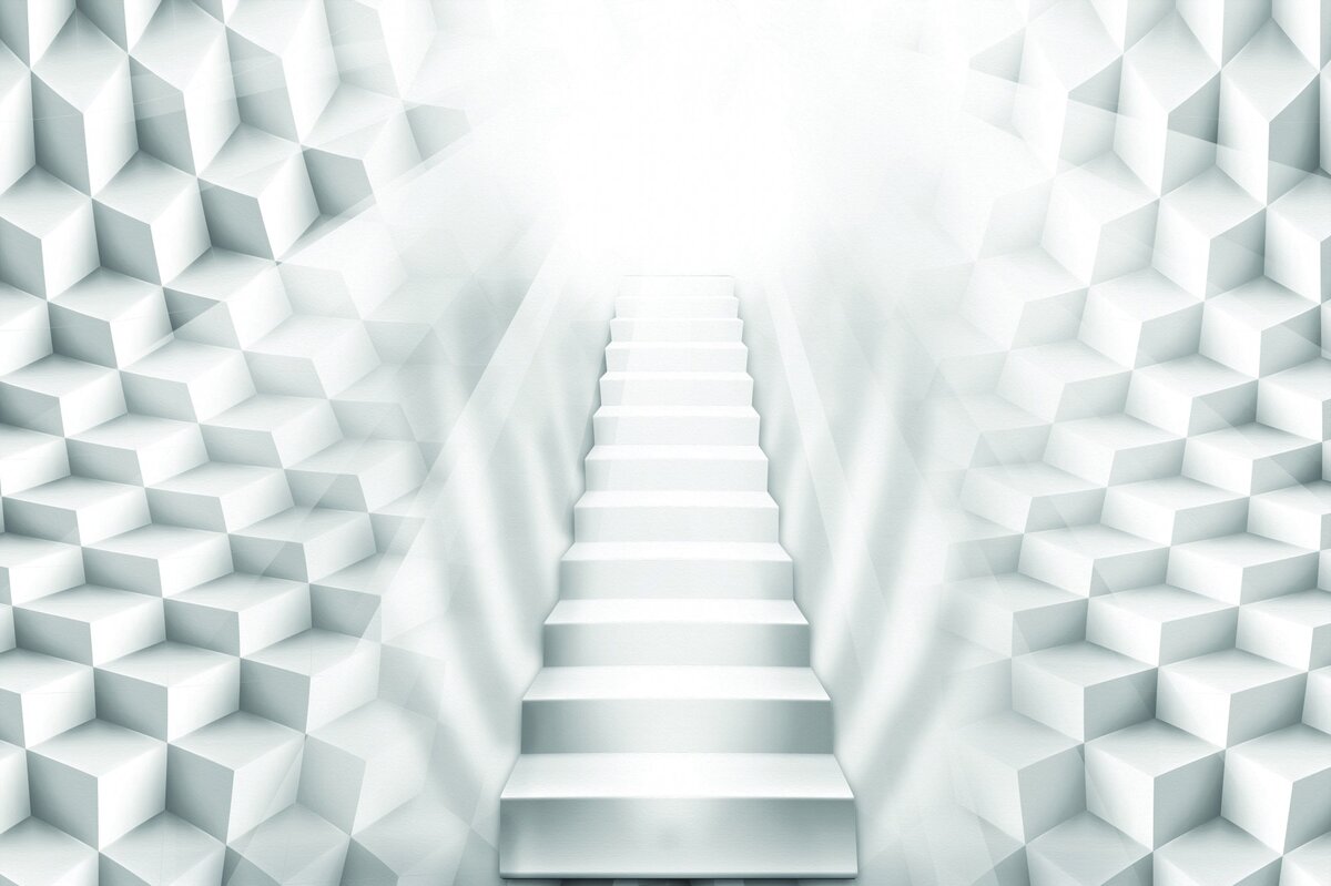 Fotobehang: Trappen die naar het licht leiden in een ruimtelijke compositie