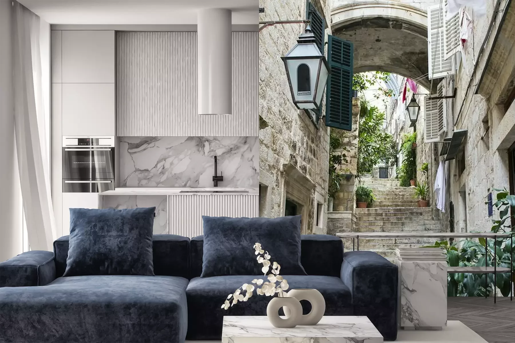 Het materiaal Premium is een glad vinyl op vlies, dat bestand is tegen uitrekken en vervorming. Het is dampdoorlatend – de muren kunnen vrij ademen – waardoor het geschikt is voor gebruik in de keuken en badkamer. Bij vervuiling kan het materiaal worden afgenomen met een vochtige doek. De maximale breedte van één baan bedraagt 95 of 105 cm, afhankelijk van de beschikbaarheid. Montage vindt plaats met de rand-aan-rand methode, wat een esthetisch resultaat zonder zichtbare naden oplevert. Omdat de lijm rechtstreeks op de muur wordt aangebracht, verloopt de installatie van het fotobehang snel en eenvoudig.