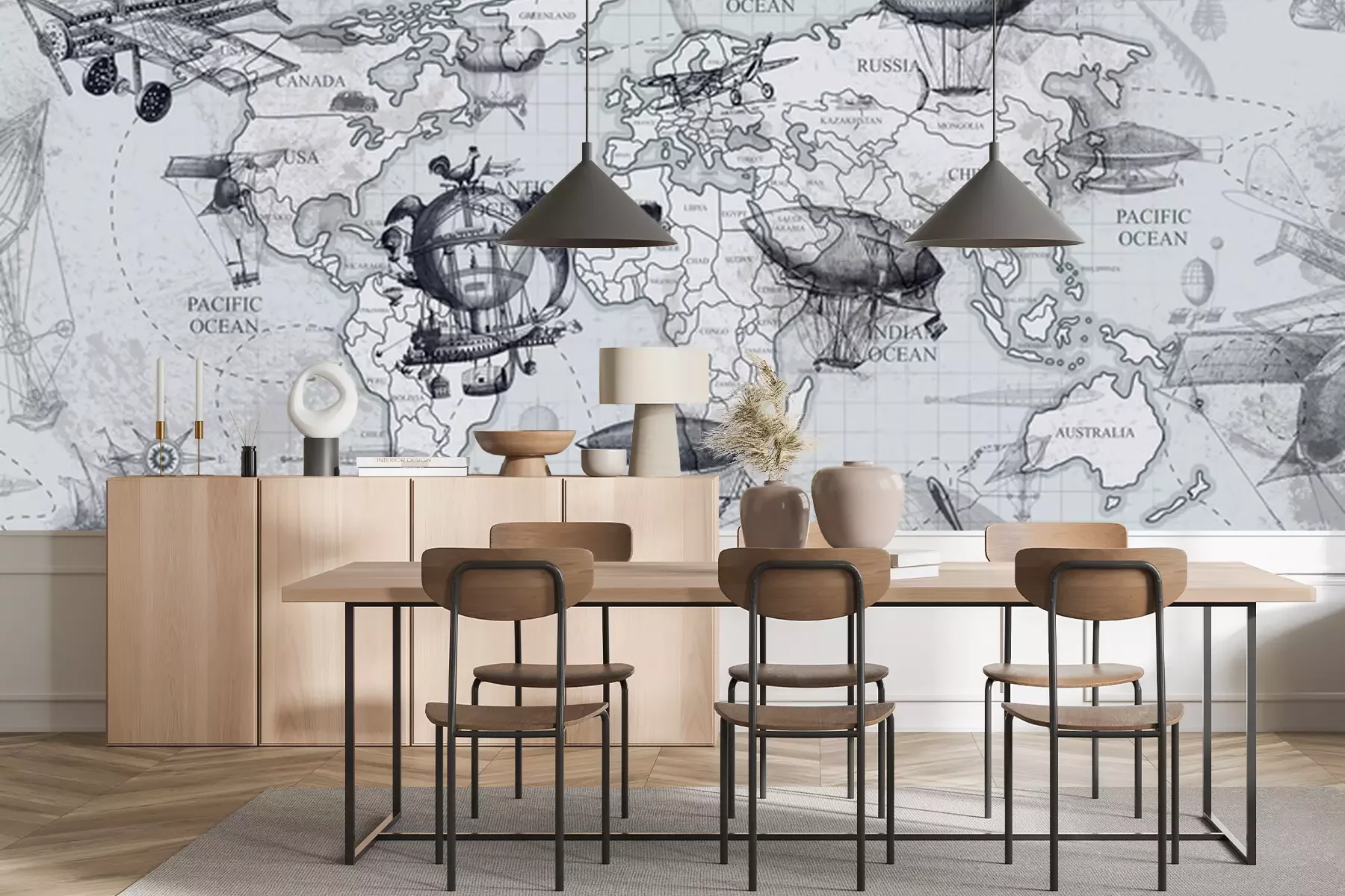 Fotobehang travel across the globe, balloons, aircraft, cars, ships photo wallpapers on the wall