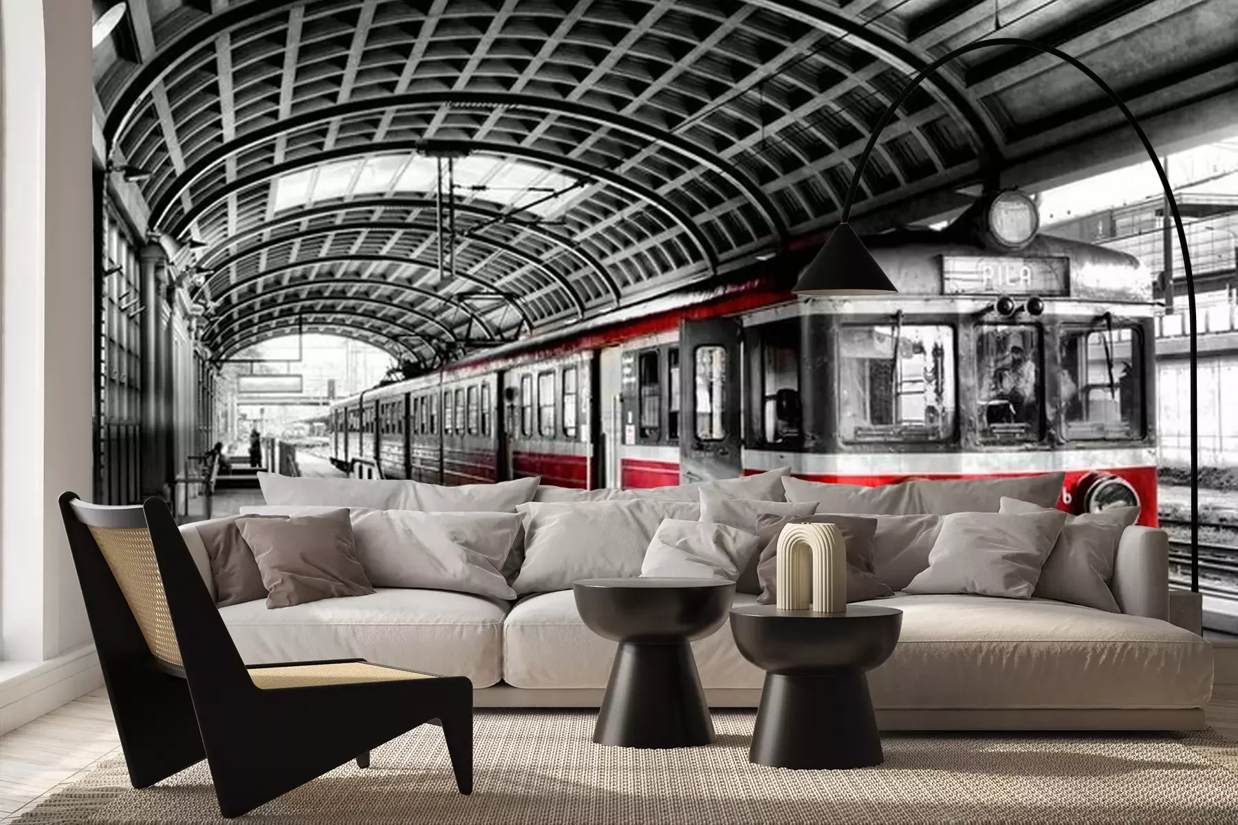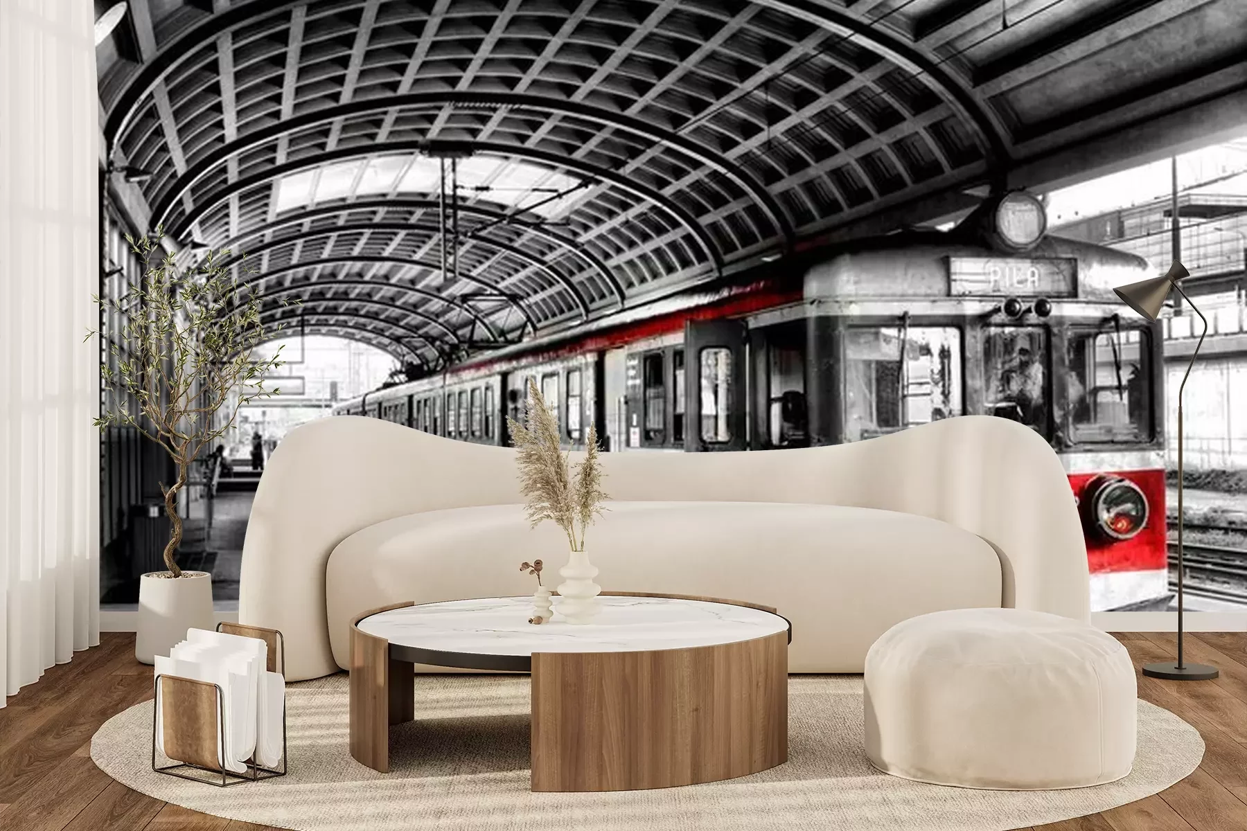 In tegenstelling tot wat men zou kunnen denken, is een fotobehang met een trein niet alleen een voorstel voor de kinderkamer van een kind dat van reizen met dit vervoermiddel houdt of droomt van een toekomst als machinist. Wij hebben een dergelijk patroon van muurdecoratie gekozen, dat zich uitstekend zal presenteren in moderne en industriële stijlen. Het voordeel van de presentatie is de originele kleurstelling - zwart-wit, maar verrijkt met een sterke rode accent in de vorm van lak op de wagons. Dankzij het feit dat de tint aan de ene kant gebalanceerd is, maar aan de andere kant een sterke dominantie heeft, is het zo'n indrukwekkend fotobehang. Trein die op het perron staat, zal de bestaande inrichting volledig veranderen, en het ruimtelijke karakter van de foto zal bovendien de illusie van diepte in de kamer introduceren. Op deze manier zal zelfs een kleine woonkamer ruimer lijken door het diep in de ruimte reikende perron. Wat maakt ons zwart-witte fotobehang nog interessant? Opmerkelijk is de combinatie van de industriële vorm van de trein met het oude cassetteplafond - zo wordt het verleden met het heden verbonden. Liefhebbers van moderne interieurs kunnen van zo'n fotobehang houden. Spoorweg zal een origineel decoratief motief worden voor een loft-appartement. Het patroon zal het beste tot zijn recht komen in combinatie met grijstinten of bruinen. Een ander idee om zo'n decoratie te arrangeren is de retrostijl, waarbij ons fotobehang ook zal passen. Trein gecombineerd met meubels uit het mid-century modern-tijdperk zal een antieke sfeer in de inrichting creëren. Maar niet alleen in een industriële of retro woonkamer zal zo'n zwart-wit fotobehang goed passen. Het is een geweldig idee voor een clubcafé of restaurant ingericht in een oude stijl, waar ook oude huishoudelijke apparaten uit het midden van de 20e eeuw als decoratie-elementen dienen en waar aan de muren oude foto's hangen. Op deze manier kan ook een hotel worden gedecoreerd dat zich in de buurt van een treinstation bevindt. De lobby en de receptie zijn uitstekende plaatsen voor ons fotobehang. Trein zal een zeer opvallend element worden dat onmiddellijk in het geheugen blijft hangen en, door te verwijzen naar de omgeving waarin het hotel zich bevindt, zal het een perfect passende decoratie zijn.