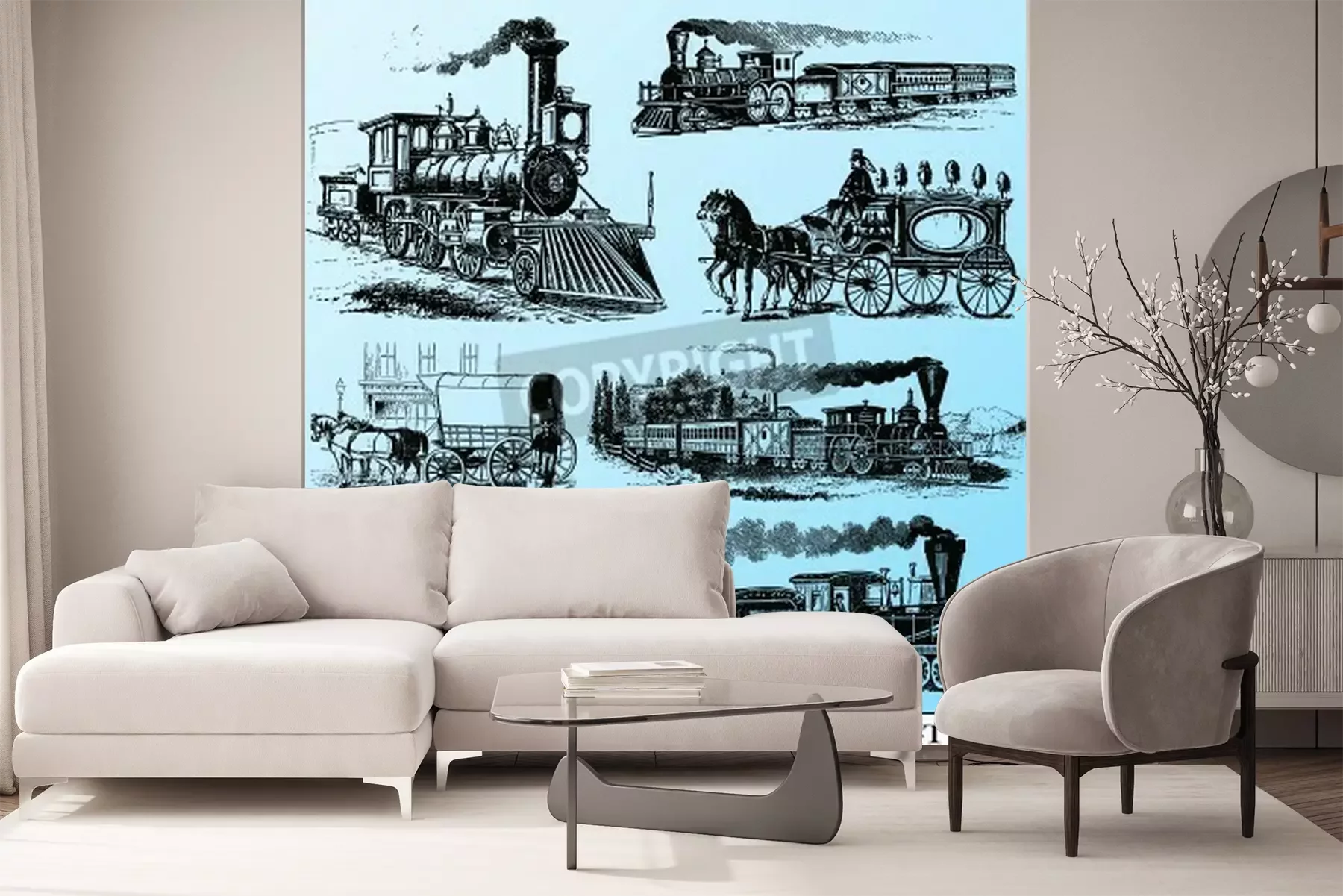 Fotobehang Treinen en locomotieven zoals geschetst
