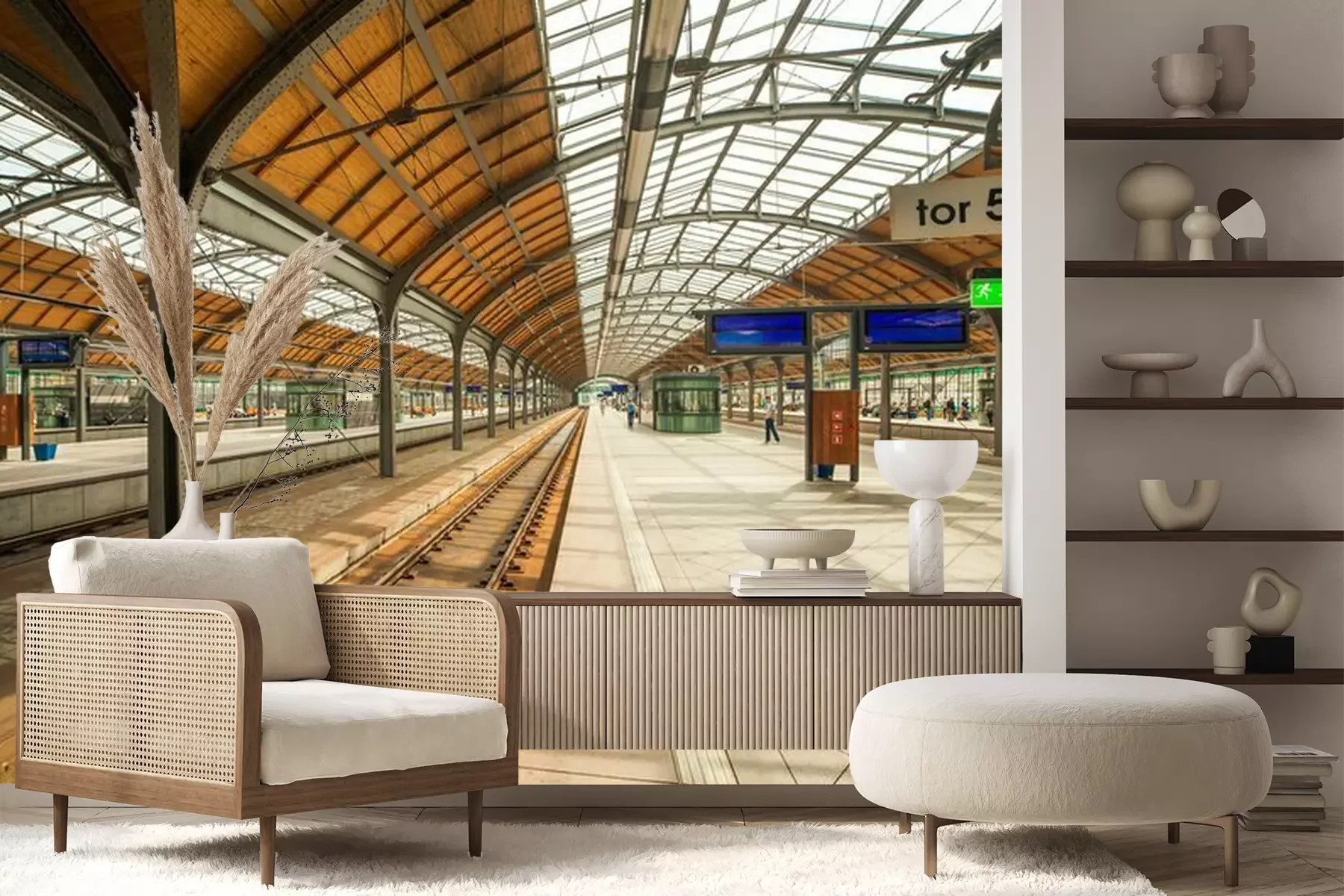 Het materiaal Premium+ is een gestructureerd vinyl op vlies met een gewicht van 255 g/m², dat kleine oneffenheden in de muur effectief camoufleert. De subtiele structuur van fijn zand geeft het oppervlak een exclusieve uitstraling, terwijl de halfmatte afwerking de diepte van de kleuren benadrukt. Het materiaal is dampdoorlatend, waardoor het ook in de keuken en badkamer kan worden gebruikt. De maximale breedte van één baan bedraagt 100 cm – bij grotere afmetingen wordt het fotobehang in meerdere gelijke banen verdeeld. De lijm wordt direct op de muur aangebracht en het behang wordt rand-aan-rand geplakt, wat zorgt voor een esthetisch resultaat zonder zichtbare naden. Het oppervlak kan gemakkelijk worden schoongemaakt door het voorzichtig af te nemen met een vochtige doek.