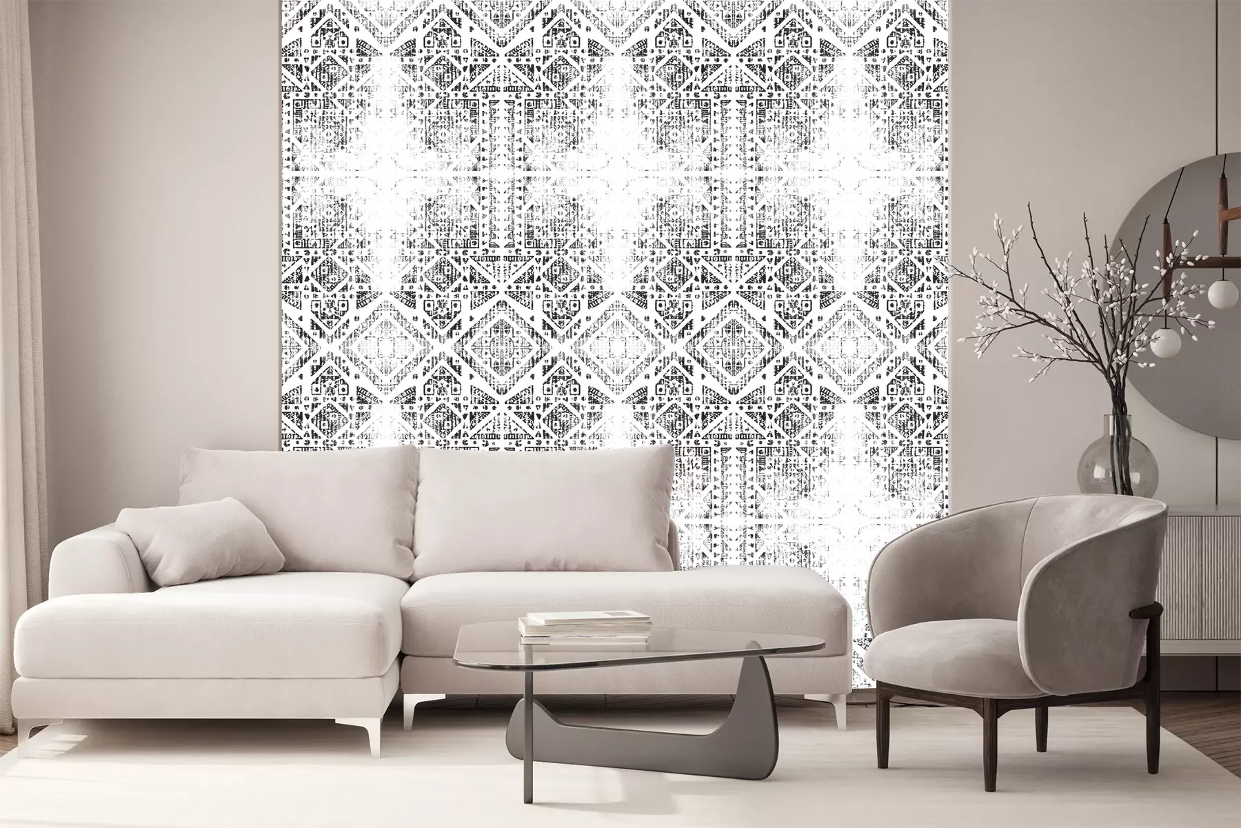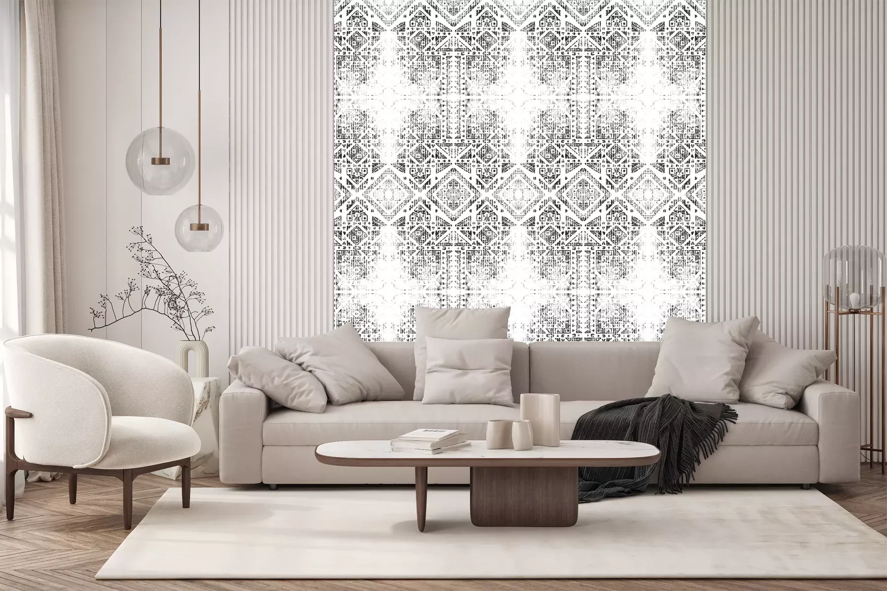 Het materiaal Standard is een hoogwaardig latexmateriaal met een glad, mat oppervlak. Dankzij de HP Latex-printtechnologie zijn de kleuren intens, duurzaam en UV-bestendig, waardoor het patroon jarenlang een onberispelijke uitstraling behoudt. Vervuilde oppervlakken kunnen voorzichtig worden afgeveegd met een droge doek. De maximale breedte van één baan bedraagt 95 cm of 105 cm – afhankelijk van de bestelde fotobehangbreedte. Bij grotere afmetingen wordt het patroon verdeeld over meerdere gelijkmatige banen. Het fotobehang wordt rand-aan-randaangebracht, wat vrijwel onzichtbare naden mogelijk maakt.