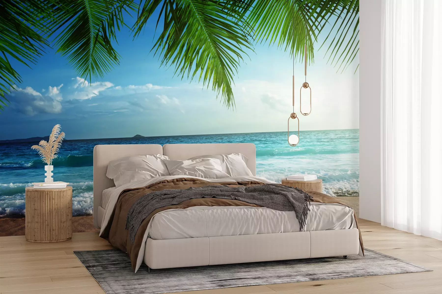 Het materiaal Premium+ is een gestructureerd vinyl op vlies met een gewicht van 255 g/m², dat kleine oneffenheden in de muur effectief camoufleert. De subtiele structuur van fijn zand geeft het oppervlak een exclusieve uitstraling, terwijl de halfmatte afwerking de diepte van de kleuren benadrukt. Het materiaal is dampdoorlatend, waardoor het ook in de keuken en badkamer kan worden gebruikt. De maximale breedte van één baan bedraagt 100 cm – bij grotere afmetingen wordt het fotobehang in meerdere gelijke banen verdeeld. De lijm wordt direct op de muur aangebracht en het behang wordt rand-aan-rand geplakt, wat zorgt voor een esthetisch resultaat zonder zichtbare naden. Het oppervlak kan gemakkelijk worden schoongemaakt door het voorzichtig af te nemen met een vochtige doek.