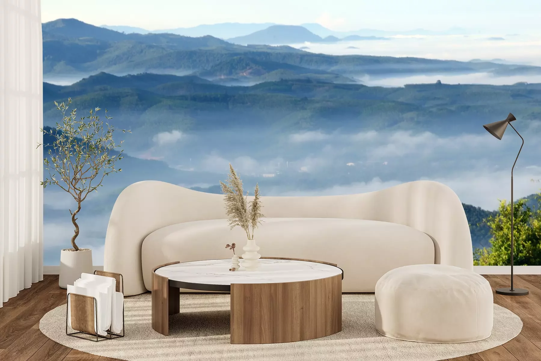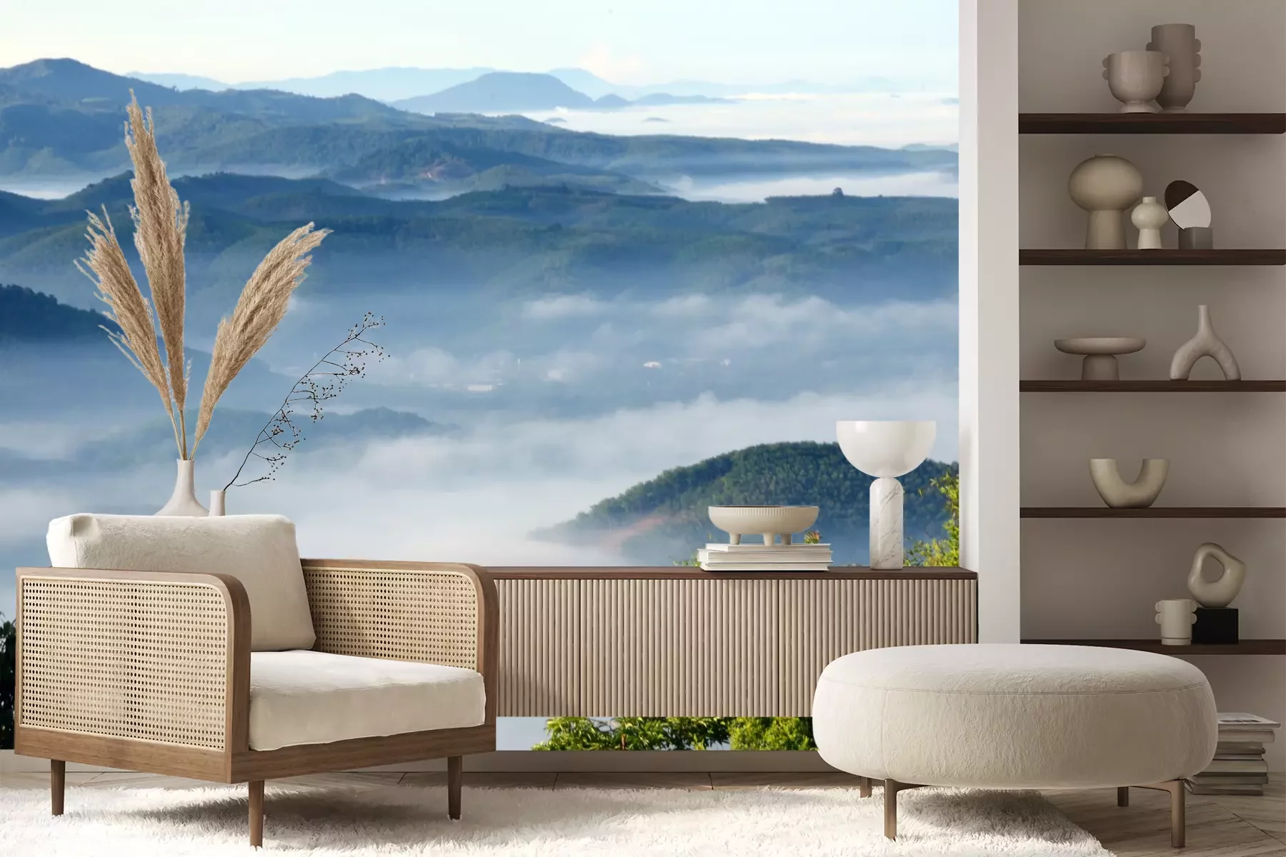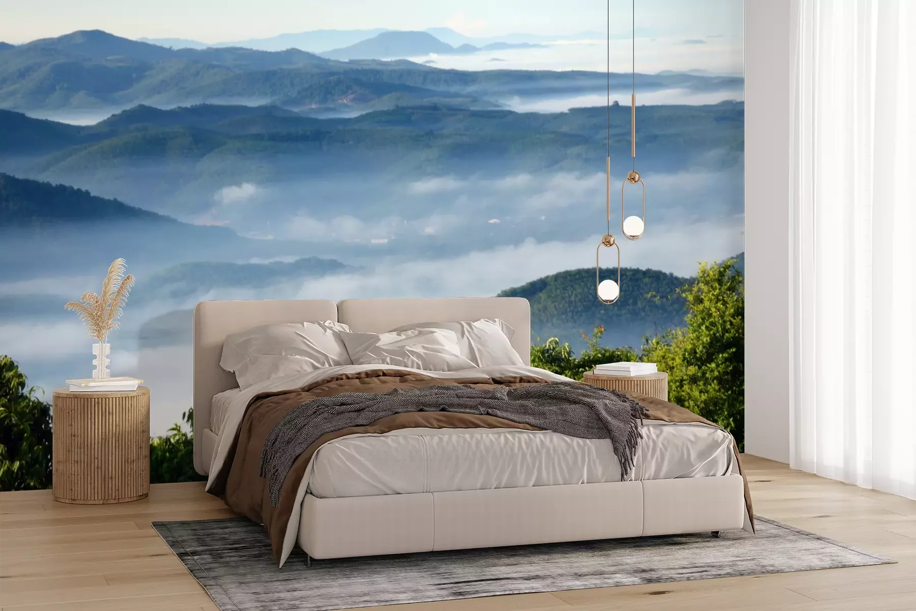 Het materiaal Premium+ is een gestructureerd vinyl op vlies met een gewicht van 255 g/m², dat kleine oneffenheden in de muur effectief camoufleert. De subtiele structuur van fijn zand geeft het oppervlak een exclusieve uitstraling, terwijl de halfmatte afwerking de diepte van de kleuren benadrukt. Het materiaal is dampdoorlatend, waardoor het ook in de keuken en badkamer kan worden gebruikt. De maximale breedte van één baan bedraagt 100 cm – bij grotere afmetingen wordt het fotobehang in meerdere gelijke banen verdeeld. De lijm wordt direct op de muur aangebracht en het behang wordt rand-aan-rand geplakt, wat zorgt voor een esthetisch resultaat zonder zichtbare naden. Het oppervlak kan gemakkelijk worden schoongemaakt door het voorzichtig af te nemen met een vochtige doek.