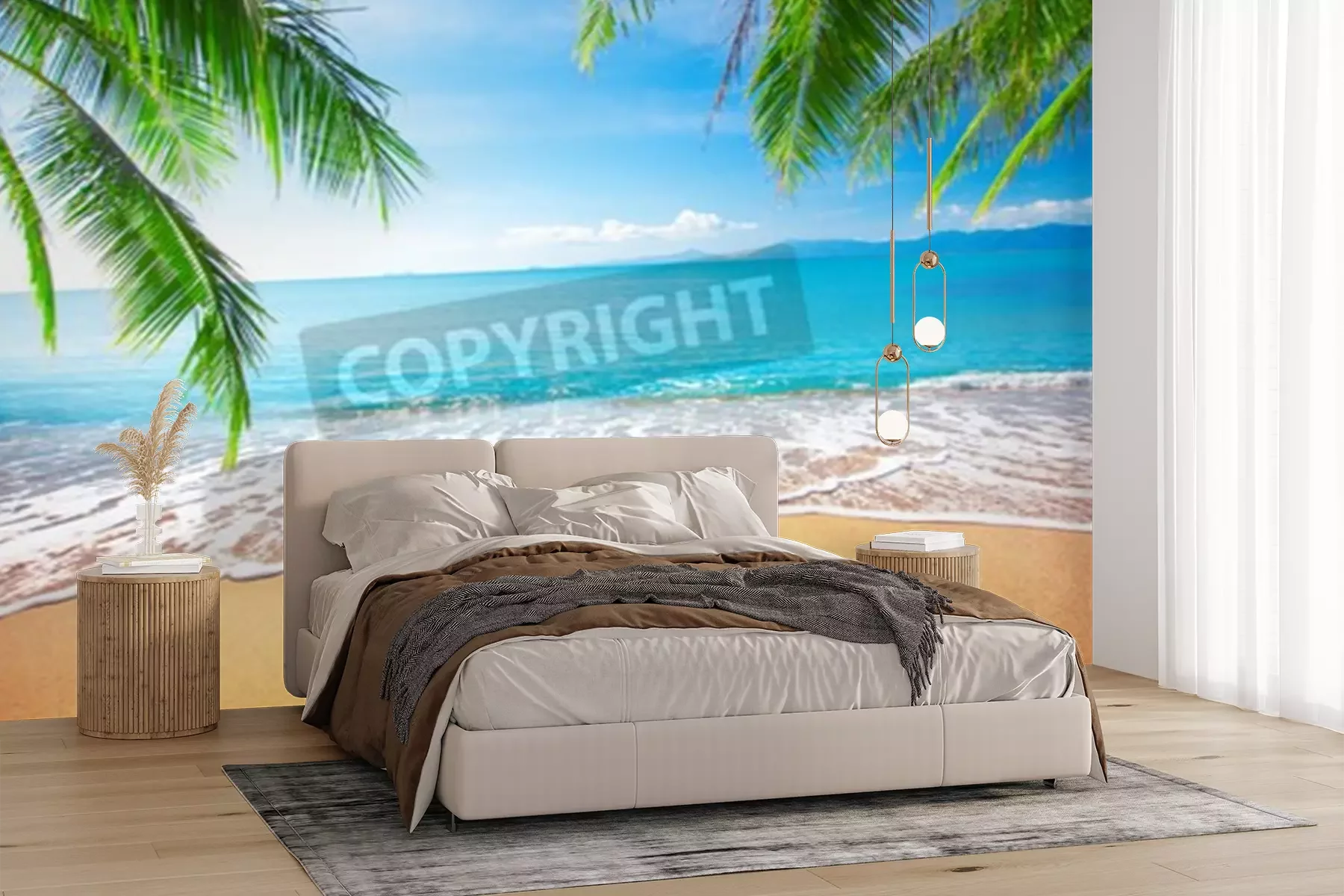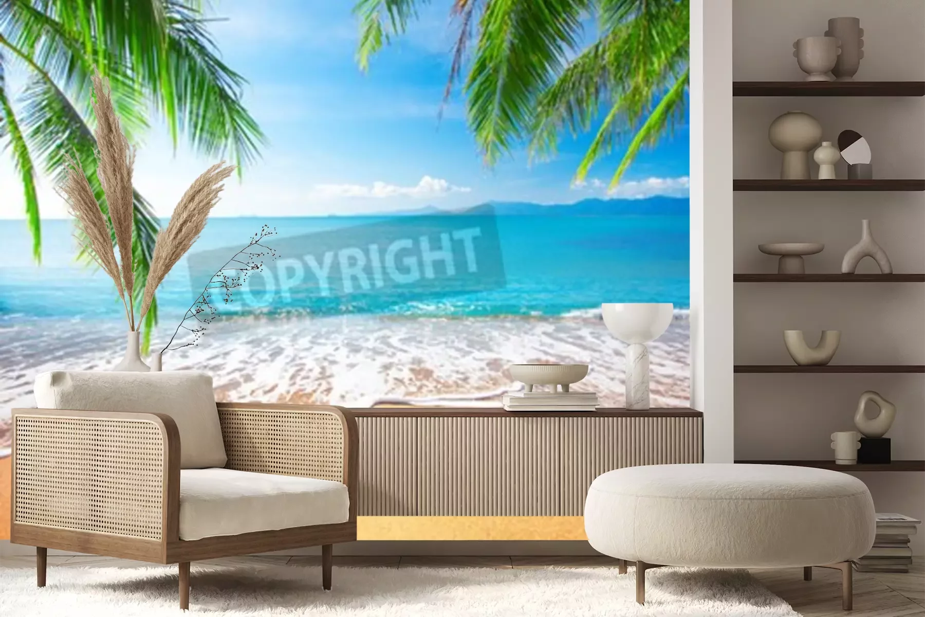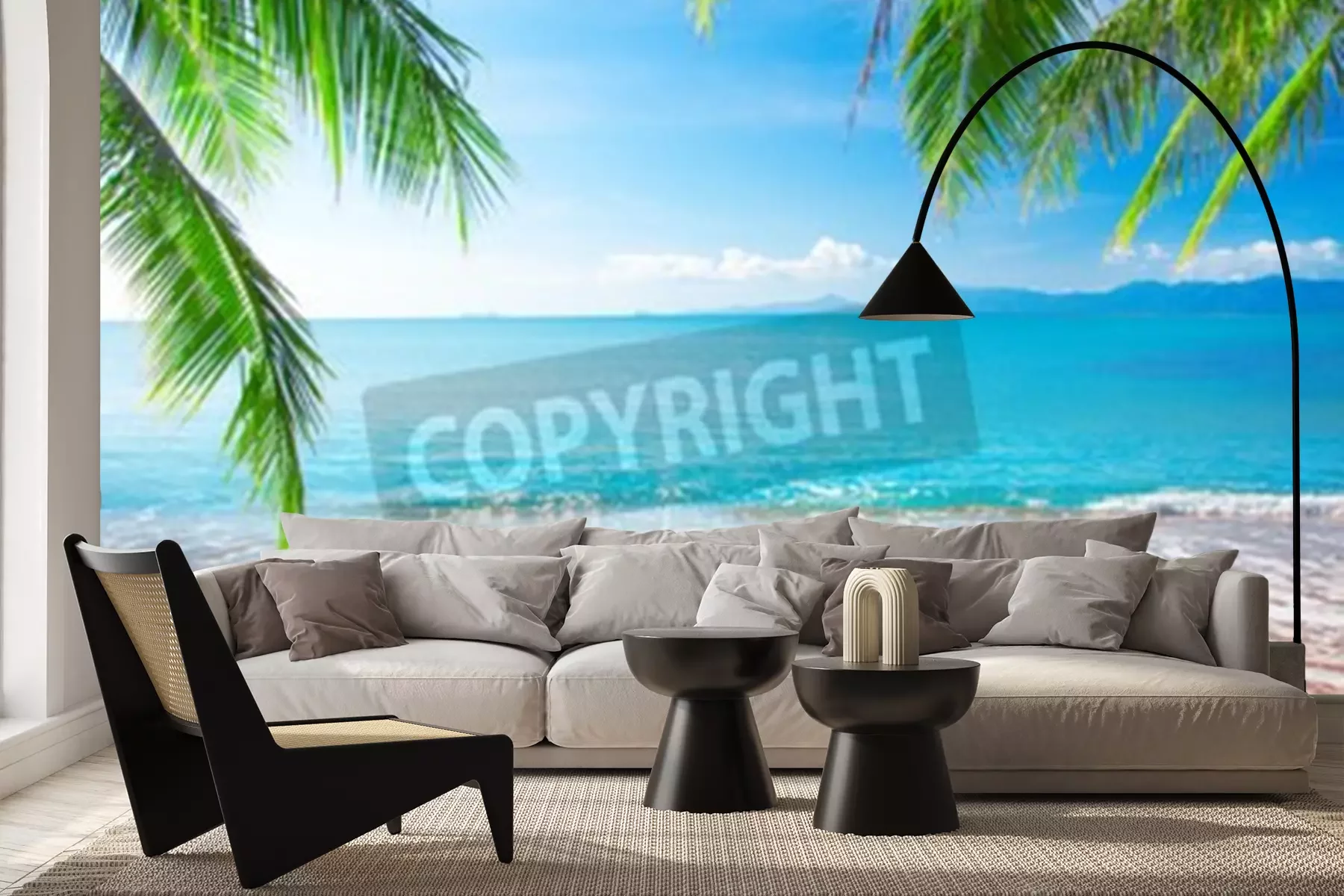 Fotobehang Tropen, palmbomen en zee