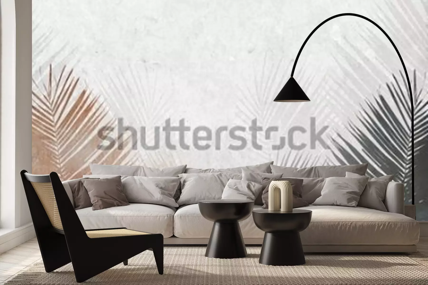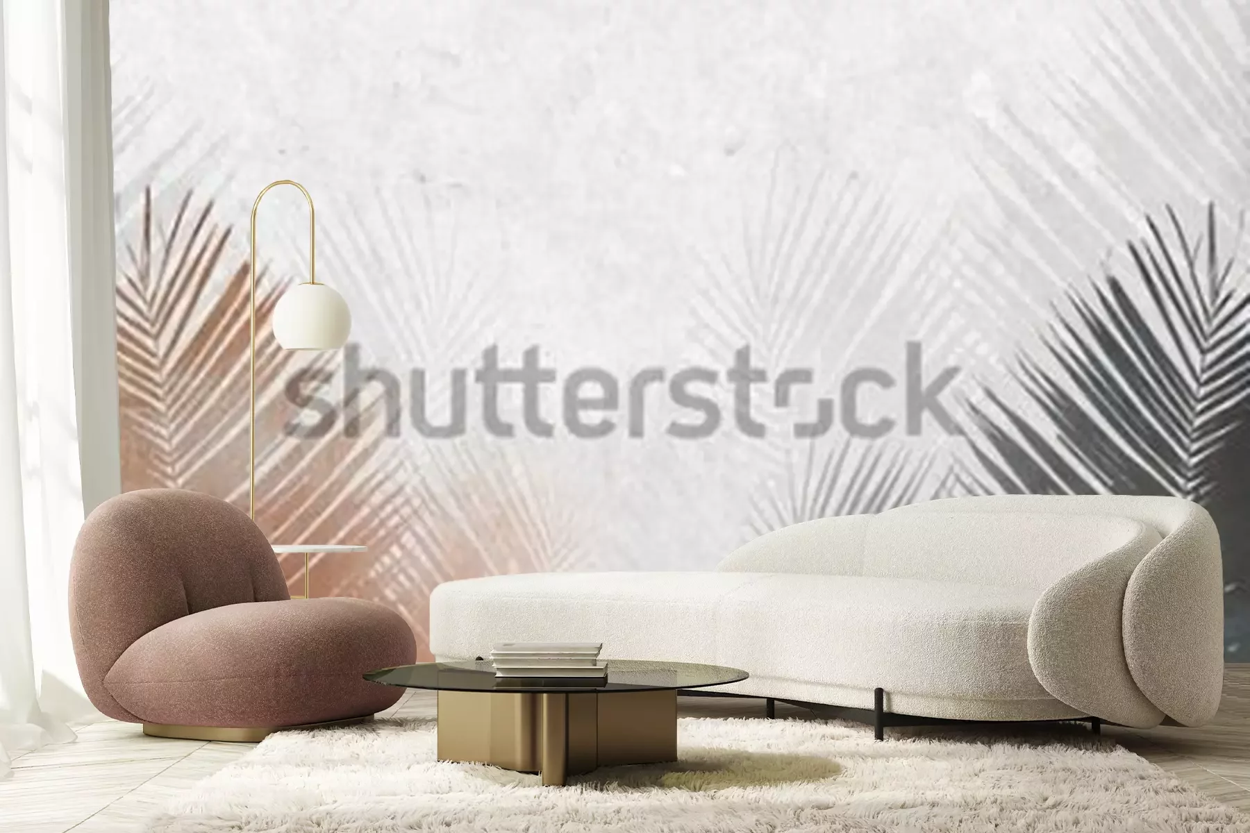Fotobehang Tropical palm leaves. Mural, Wallpaper for internal printing. 3D illustration