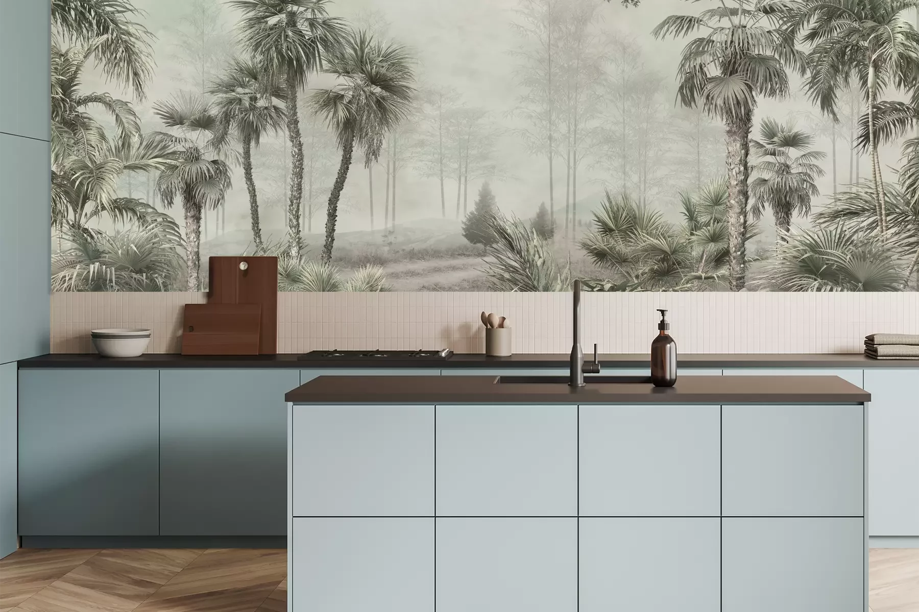 Het materiaal Premium is een glad vinyl op vlies, dat bestand is tegen uitrekken en vervorming. Het is dampdoorlatend – de muren kunnen vrij ademen – waardoor het geschikt is voor gebruik in de keuken en badkamer. Bij vervuiling kan het materiaal worden afgenomen met een vochtige doek. De maximale breedte van één baan bedraagt 95 of 105 cm, afhankelijk van de beschikbaarheid. Montage vindt plaats met de rand-aan-rand methode, wat een esthetisch resultaat zonder zichtbare naden oplevert. Omdat de lijm rechtstreeks op de muur wordt aangebracht, verloopt de installatie van het fotobehang snel en eenvoudig.