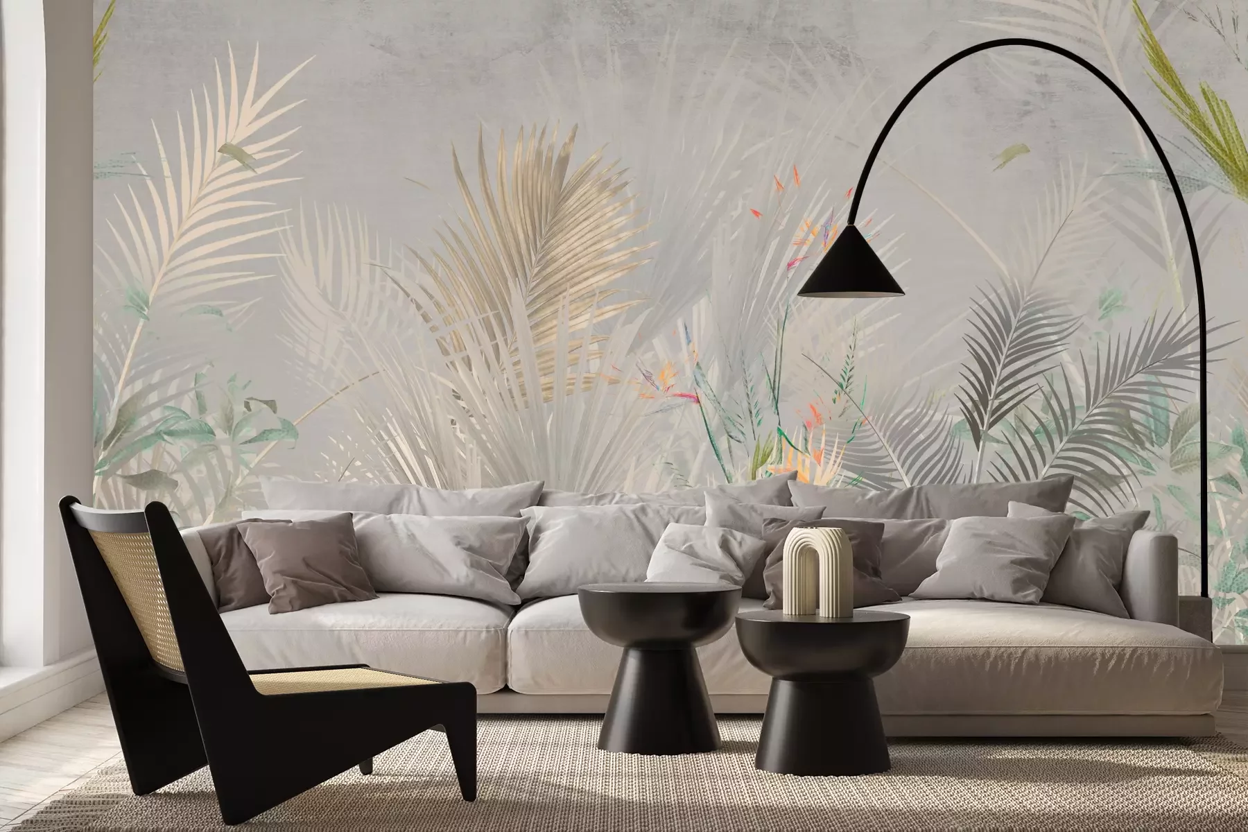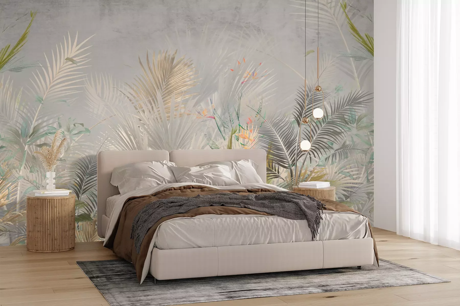 Het materiaal Premium+ is een gestructureerd vinyl op vlies met een gewicht van 255 g/m², dat kleine oneffenheden in de muur effectief camoufleert. De subtiele structuur van fijn zand geeft het oppervlak een exclusieve uitstraling, terwijl de halfmatte afwerking de diepte van de kleuren benadrukt. Het materiaal is dampdoorlatend, waardoor het ook in de keuken en badkamer kan worden gebruikt. De maximale breedte van één baan bedraagt 100 cm – bij grotere afmetingen wordt het fotobehang in meerdere gelijke banen verdeeld. De lijm wordt direct op de muur aangebracht en het behang wordt rand-aan-rand geplakt, wat zorgt voor een esthetisch resultaat zonder zichtbare naden. Het oppervlak kan gemakkelijk worden schoongemaakt door het voorzichtig af te nemen met een vochtige doek.