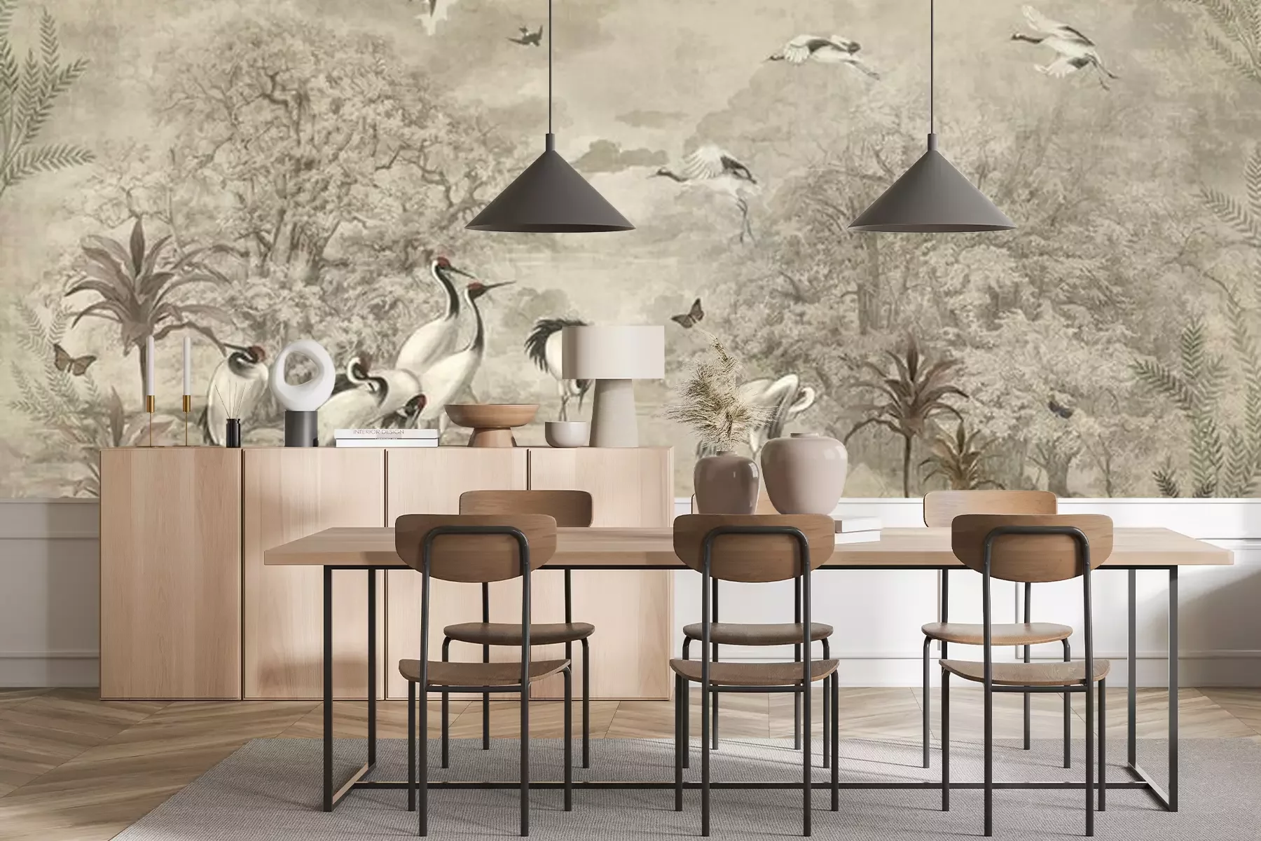 Het materiaal Standard is een hoogwaardig latexmateriaal met een glad, mat oppervlak. Dankzij de HP Latex-printtechnologie zijn de kleuren intens, duurzaam en UV-bestendig, waardoor het patroon jarenlang een onberispelijke uitstraling behoudt. Vervuilde oppervlakken kunnen voorzichtig worden afgeveegd met een droge doek. De maximale breedte van één baan bedraagt 95 cm of 105 cm – afhankelijk van de bestelde fotobehangbreedte. Bij grotere afmetingen wordt het patroon verdeeld over meerdere gelijkmatige banen. Het fotobehang wordt rand-aan-randaangebracht, wat vrijwel onzichtbare naden mogelijk maakt.