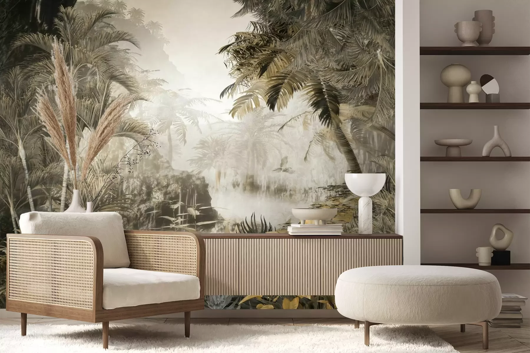 Het materiaal Premium+ is een gestructureerd vinyl op vlies met een gewicht van 255 g/m², dat kleine oneffenheden in de muur effectief camoufleert. De subtiele structuur van fijn zand geeft het oppervlak een exclusieve uitstraling, terwijl de halfmatte afwerking de diepte van de kleuren benadrukt. Het materiaal is dampdoorlatend, waardoor het ook in de keuken en badkamer kan worden gebruikt. De maximale breedte van één baan bedraagt 100 cm – bij grotere afmetingen wordt het fotobehang in meerdere gelijke banen verdeeld. De lijm wordt direct op de muur aangebracht en het behang wordt rand-aan-rand geplakt, wat zorgt voor een esthetisch resultaat zonder zichtbare naden. Het oppervlak kan gemakkelijk worden schoongemaakt door het voorzichtig af te nemen met een vochtige doek.