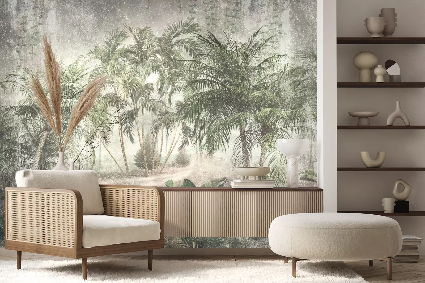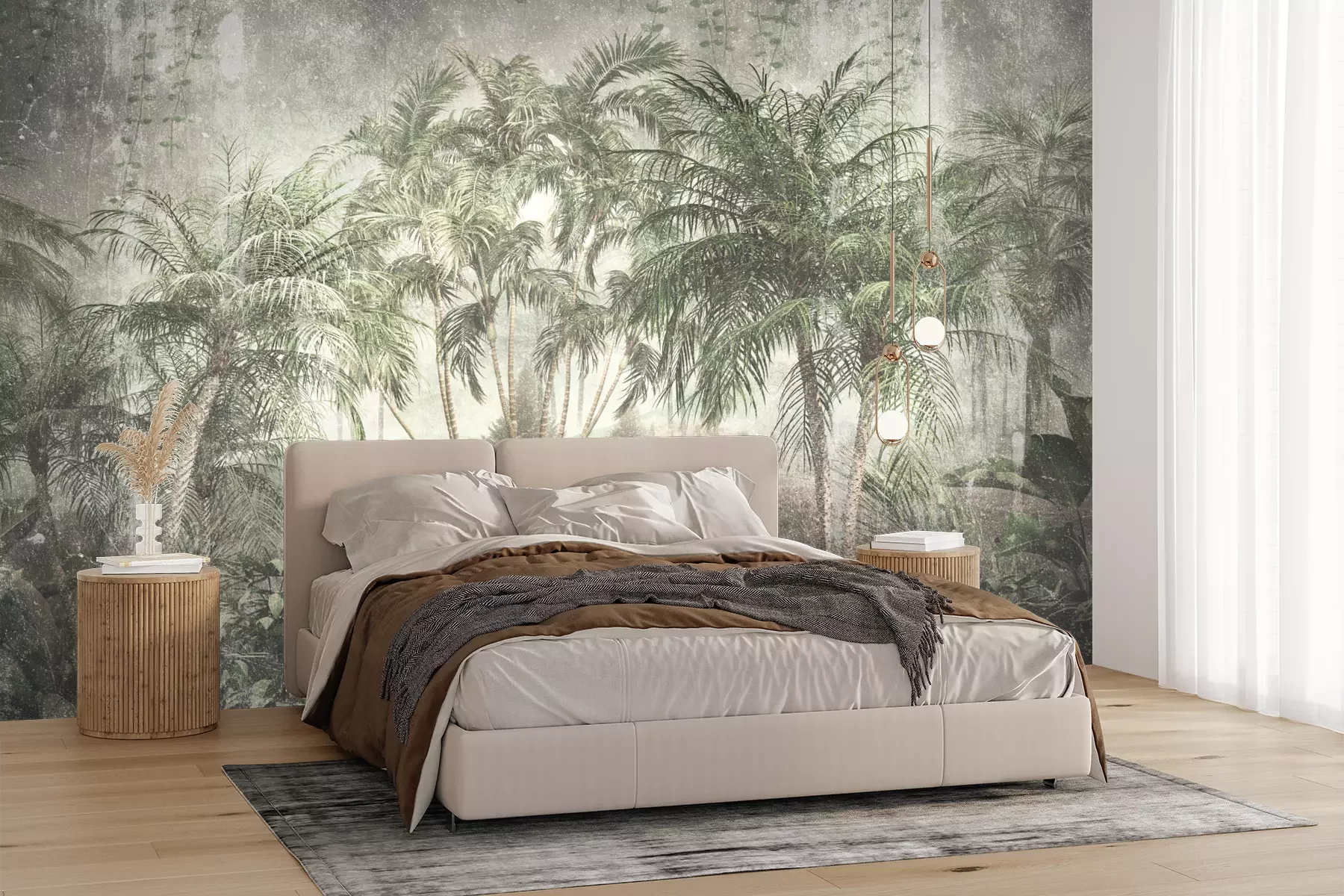Het materiaal Premium+ is een gestructureerd vinyl op vlies met een gewicht van 255 g/m², dat kleine oneffenheden in de muur effectief camoufleert. De subtiele structuur van fijn zand geeft het oppervlak een exclusieve uitstraling, terwijl de halfmatte afwerking de diepte van de kleuren benadrukt. Het materiaal is dampdoorlatend, waardoor het ook in de keuken en badkamer kan worden gebruikt. De maximale breedte van één baan bedraagt 100 cm – bij grotere afmetingen wordt het fotobehang in meerdere gelijke banen verdeeld. De lijm wordt direct op de muur aangebracht en het behang wordt rand-aan-rand geplakt, wat zorgt voor een esthetisch resultaat zonder zichtbare naden. Het oppervlak kan gemakkelijk worden schoongemaakt door het voorzichtig af te nemen met een vochtige doek.