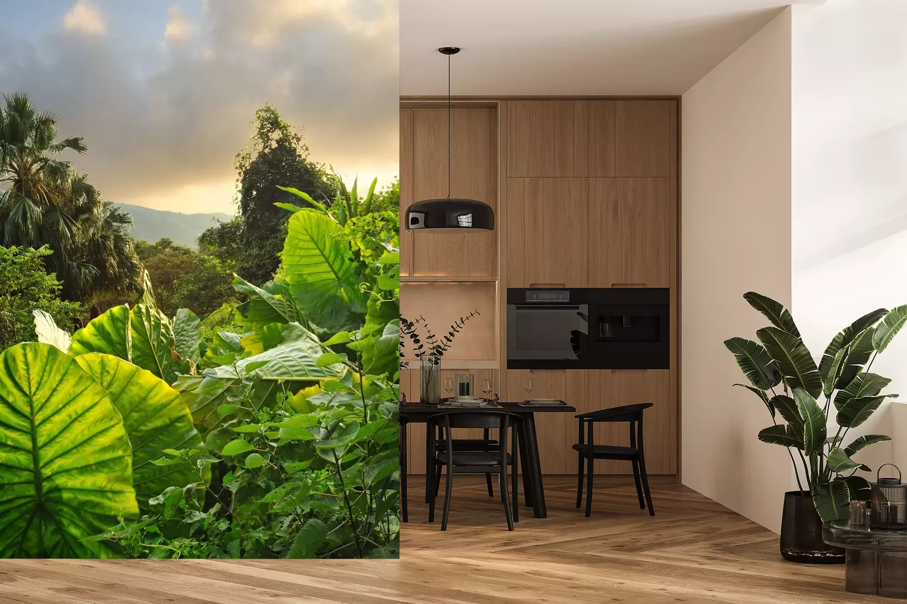 Het materiaal Premium+ is een gestructureerd vinyl op vlies met een gewicht van 255 g/m², dat kleine oneffenheden in de muur effectief camoufleert. De subtiele structuur van fijn zand geeft het oppervlak een exclusieve uitstraling, terwijl de halfmatte afwerking de diepte van de kleuren benadrukt. Het materiaal is dampdoorlatend, waardoor het ook in de keuken en badkamer kan worden gebruikt. De maximale breedte van één baan bedraagt 100 cm – bij grotere afmetingen wordt het fotobehang in meerdere gelijke banen verdeeld. De lijm wordt direct op de muur aangebracht en het behang wordt rand-aan-rand geplakt, wat zorgt voor een esthetisch resultaat zonder zichtbare naden. Het oppervlak kan gemakkelijk worden schoongemaakt door het voorzichtig af te nemen met een vochtige doek.