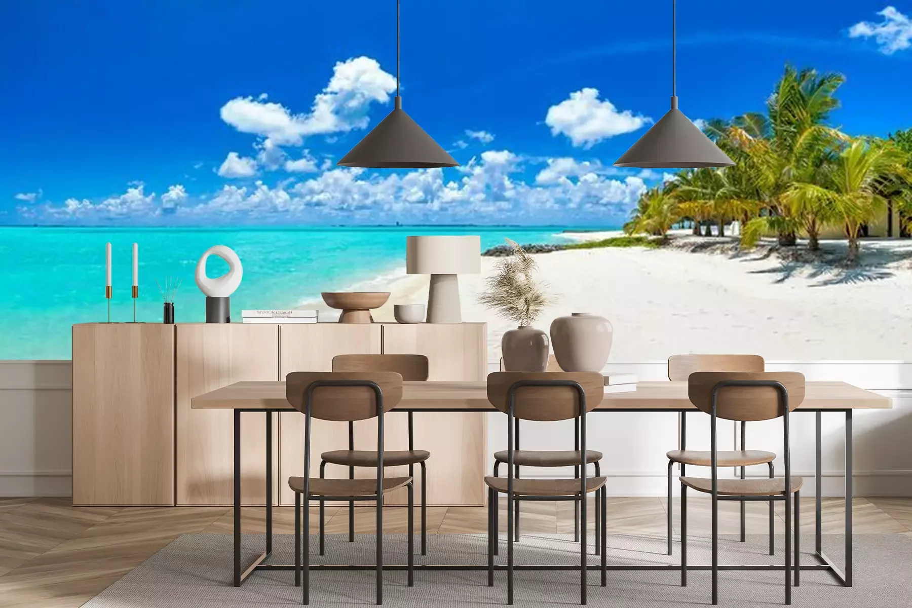 Het materiaal Premium+ is een gestructureerd vinyl op vlies met een gewicht van 255 g/m², dat kleine oneffenheden in de muur effectief camoufleert. De subtiele structuur van fijn zand geeft het oppervlak een exclusieve uitstraling, terwijl de halfmatte afwerking de diepte van de kleuren benadrukt. Het materiaal is dampdoorlatend, waardoor het ook in de keuken en badkamer kan worden gebruikt. De maximale breedte van één baan bedraagt 100 cm – bij grotere afmetingen wordt het fotobehang in meerdere gelijke banen verdeeld. De lijm wordt direct op de muur aangebracht en het behang wordt rand-aan-rand geplakt, wat zorgt voor een esthetisch resultaat zonder zichtbare naden. Het oppervlak kan gemakkelijk worden schoongemaakt door het voorzichtig af te nemen met een vochtige doek.