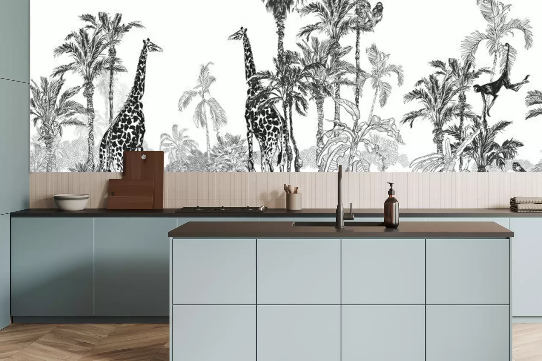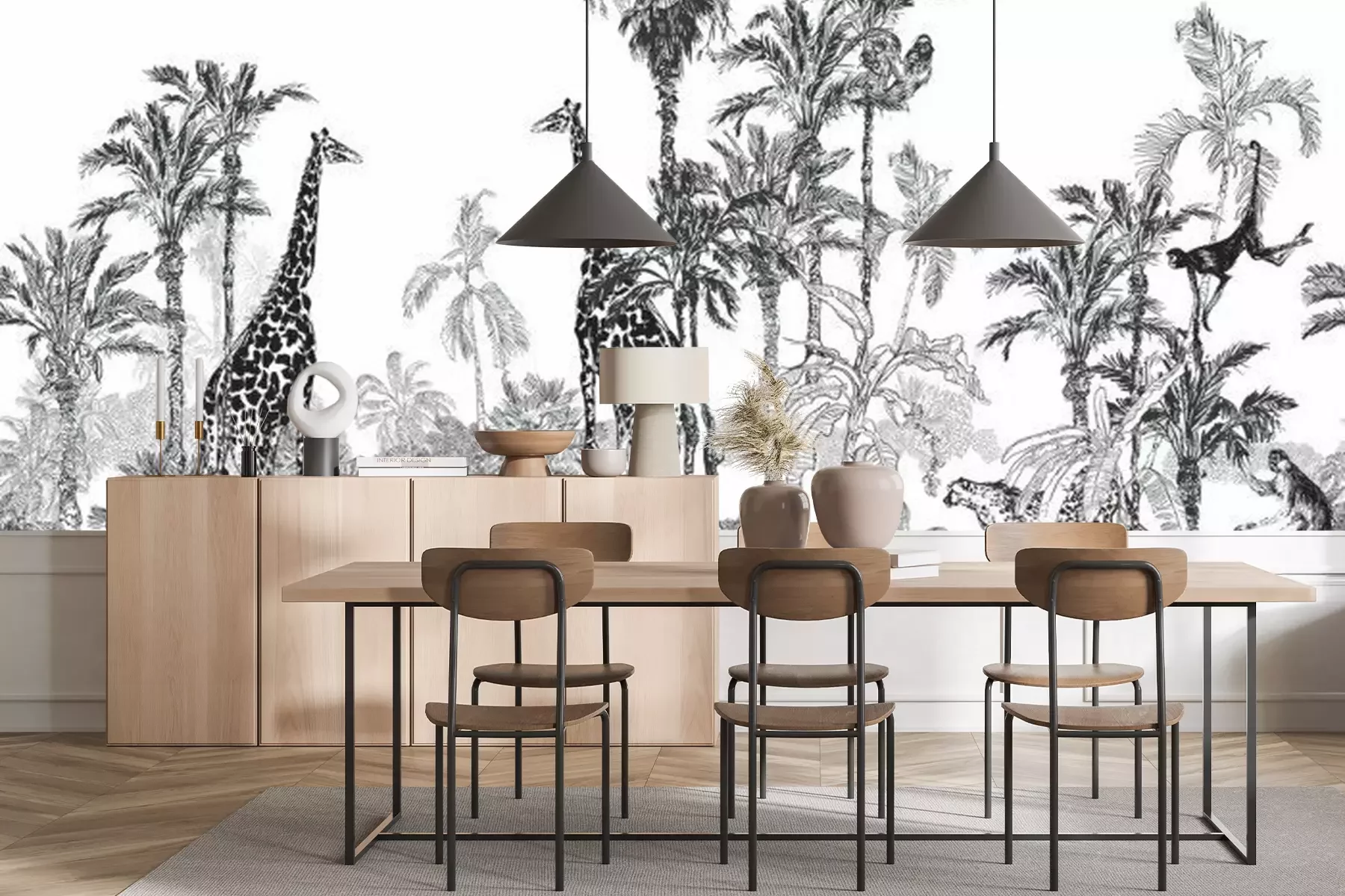 Zwart-wit jungle met apenProbleemloze bezorging verzorgd door vertrouwde vervoerders