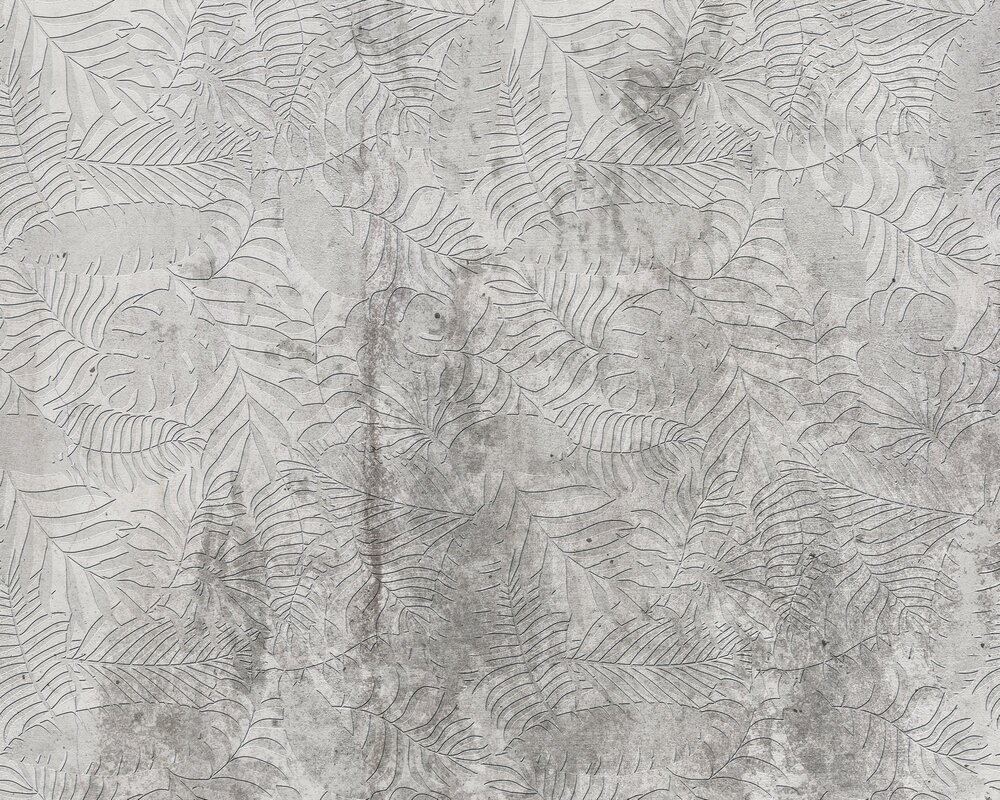 Fotobehang: Tropische bladeren afgedrukt op een betonnen muur